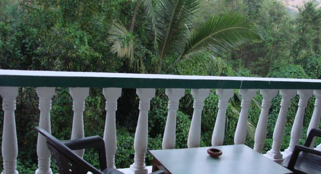 2 этаж Делюкс. Кровать тумба столик шкаф. Имеет собственный балкончик с обратной стороны отеля. Вид с балкона ниочём - просто заросли и свалка (как везде в Индии).