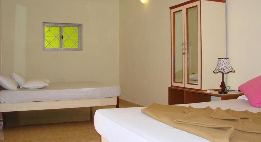 Нас было трое, поэтому разместили в семейном номере на 3 этаже. Большой и уютный номер 2**. Отель понравился, дружелюбный персонал, делают уборку по требованию. В ресторане при кафе готовят вкусно и большие порции, можно смело брать блюдо на двоих. Единственный негативный момент с отелем, что были украдены мелкие вещи после уборки. Так что закрывайте чемоданы на замочки. Сейфа у нас не было в комнате и про него мы не спрашивали на ресепшене. Полотенце лучше привезти с собой. Часто отключали свет, поэтому фонариком или свечами лучше запастись.