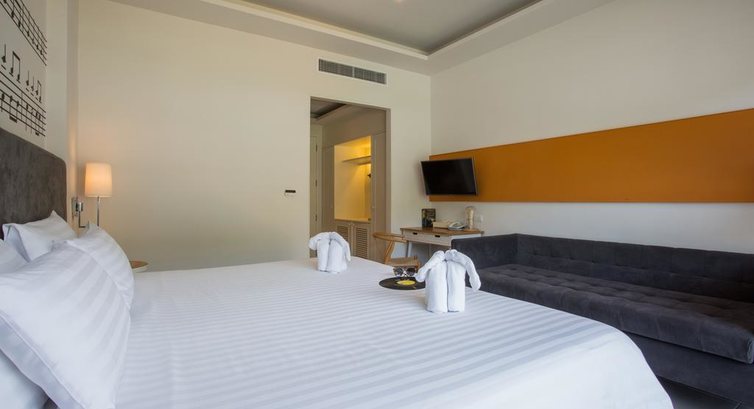 Типи номерів: • 45 indy deluxe (32 кв.м, макс.3 чол, вид на місто/гори) • 12 classical deluxe (32 кв.м, макс.3 чол, вид на басейн) • 19 jazz pool access (36 кв.м, макс.3 чол, близький доступ до басейну)У номері: • кондиціонер • ТБ • телефон • Wi-Fi (безкоштовно) • сейф • телефон • міні-бар • 2 пляшки води щодня безкоштовно • душ • фен • праска, дошка (за запитом) • балкон