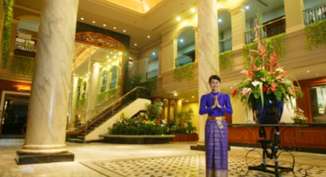 Дизайн интерьера в отеле, судя по всему, проектировали на Американский лад прошлого века, все сделано роскошно, но старое. Все указывает на это, лично в них не бывал к сожалению, сужу по фильмам того времени. Отель старый и ремонт давно не делали. Краны текут, следы ржавчины, вода в момент первого включения была оранжевого цвета ( в таком интерьере немного пугает, насмотрелся видимо фильмов ужасов ). Дизайн на любителя, номер был у нас на 15 этаже, смотрю фотографии туристов и кроме лобби ни чего не узнаю. Был в нем проездом, судя по всему как и другие оставившие отзыв. Сломался самолет и нас привезли сюда. Находится в городе, далеко от пляжей. Да же не знаю кому такой отель рекомендовать. Для Тайланда очень странный отель.
