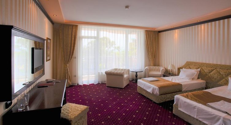 Когда мы приехали, нам дали временный номер (поспать) с видом на стоянку, но в 11 утра уже звонили, что готов наш номер с видом на море и мы можем переехать. Номера отличные, большие, удобные кровати, подушки, одеяла...пишу это т.к выезжаем часто на море и даже в пятерках номера и постельные принадлежности гораздо хуже, чем здесь!