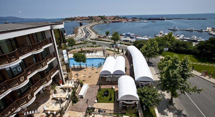 Симпатичный отель,но без территории, с собственным кусочком пляжа.Очень уютный, есть бассейн, симпатичные беседки.Рядом старинный город Несебр.