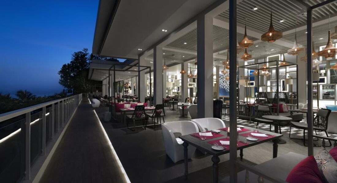 Хороший дорогой отель, но нам не подошел по требованию. Отдыхали с маленьким ребенком 1, 9 мес. - нет ни одного пандуса для коляски ( как же мы намучались, таская коляску в горку и по ступенькам до номера) Отель находится на горе и номера уходят в гору. Тренировка для ног была хорошая, учитывая, что лифт до нашего этажа не ходил-) Пляж у отеля свой, чистый, море хорошее, правда бывают волны,но теплое. Завтраки великолепные, но ужин лучше не брать и питаться за территорией отеля в кафешках. Мы, к сожалению, по совету туроператора взяли ужин, чтобы было чем ребенка накормить - это было ошибкой. Выбор ужина по меню. Например, 12 горячих блюд, из них 4 острых, 4 которые нам не нравятся по содержанию. И остальные 4 мы ели все 14 дней, часто каждый день одно и тоже блюдо. Салат по меню только один съедобный - с тунцом. Для ребенка меню- картофель фри,острые фрикадельки, картофельное пюре в вареной цветной капустой, морож, макароны - в итоге, ребенка кормили баночной едой, которая продавалась в магазине- Хайнц (мясо с рисом или с макаронами), вот и вся еда через день. Хорошо, что взяла с собой растворимые каши и молочную смесь. Хотя, молоко в магазине хорошее продают. Если не брать ужин в путевку и кушать по обычному меню ресторана отеля- это лучше, т.к. обычное меню намного шире и вкуснее, лучше оплатить по факту. В отеле нет анимации, сауна платная и вообще, там все за деньги. Рядом отель 4 звезды, где намного дешевле и в стоимость входит сауна и джакузи, море тоже, правда пляжа у отеля нет, лежаки платные, там живая музыка и больше ресторанов. В нашем отеле жизнь умирала в 20.00. Хоть спать ложись. Но у нас был огромный балкон с диваном, креслами, лежаками, столиками и офигенным видом на море. Там мы часто проводили вечернее время, смотря кино, попивая напитки. Для нас 150 000 на 2 взрослых и 1 маленького ребенка, который шел, как инфант - было неоправдано дорого. Для детей там ничего нет, только тишина и покой...
