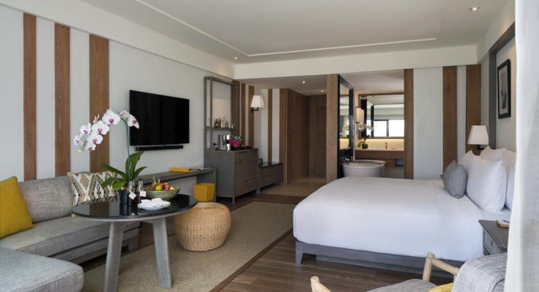 Мы с сестрой отдыхали в этом отеле в сентябре, все понравилось, довольны отдыхом. Красивый, современный, стильный и дорогой отель, стоящий своих денег. Покупали тур у ТПГ. Менеджер предлагала различные отели, но этот особо отметила, рассказав многое из личного опыта посещения. По организации отдыха нет претензий, что перелёты, что трансфер - вовремя и комфортно. Если возникали вопросы - на связи была менеджер, которая могла толково все пояснить и помочь. Расположен отель на холме, так что виды здесь просто потрясающие!! Все в зелени, красота! Никаких шумных развлечений и прочего рядом нет, тишина и релакс. Нас по прибытию очень гостепреимно и доброжелательно встретили, помогли с заселением. Большая благодарность персоналу рецепции за отзывчивость. Номер шикарный! Большие панорамные окна с потрясающим видом. Кровать с очень удобными подушками и дорогим постельным бельем. Хорошая косметика в ванной. Белоснежные полотенца. Новая техника и сантехника. ТВ, кондиционер, чайник, фен и прочее. К уборке вообще нет претензий, убирались несколько раз в день, тщательно. Обслуживание здесь на высоком уровне, сотрудники отличные, прекрасно выполняют свои обязанности. Питание включало завтраки. Особый плюс - вид на океан из ресторана. Сервировали шведский стол. Разнообразие было ежедневно. Фрукты, овощи, омлет, выпечка, горячие закуски и прочее. Безупречное обслуживание, аккуратные официанты. Ужины отличные, с широким ассортиментом, но с приличными ценами. Дешевле покушать в местных заведениях неподалёку, там и порции большие, и вкусно, и недорого. Вай фай в отеле нормальный. Бассейн чистый, но мелковат. Пляж очень красивый, протяжный. Да, лежаков нет, но и на полотенце на песке приятно полежать. купаться очень понравилось, в бухте тихо, практически нет больших волн. Зонтики и полотенца выдают. В море пологий песчаный заход. Вообщем, здесь уютно, тихо, спокойно и хорошо, покидать пределы отеля не хочется, мы всего пару раз выбирались на такси по магазинам. Условия очень классные, персонал и обслуживание просто супер. Рекомендую!