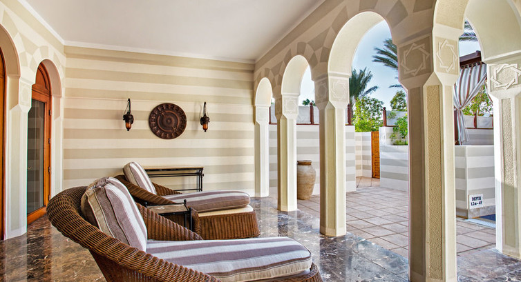 Привез на ресепшн, там тоже все очень приятно, встретили, соки-приветственные коктейли, сразу предложили проехать в номер. Приехали, осмотрели, парень сразу предложил, если что не так, несколько номеров на выбор. Заселились. Сразу скажу, что обстановка не какая-то там вау! Довольно не новый ремонт, но никакой разрухи, просто нормально всё. Есть свой внутренний дворик с лежаками, стол, стулья, все это хорошо закрыто от посторонних глаз заборчиком и живой изгородью. Довольно большая вместительная гардеробная. Вот мраморная ванна в полу, это не совсем комфортно, так как вода быстро остынет, а сидеть и любоваться из нее не на что особо (я имею ввиду, иногда из ванной в номере может быть премилый вид), тут этого нет, использовалась как душ, если душ был занят:)