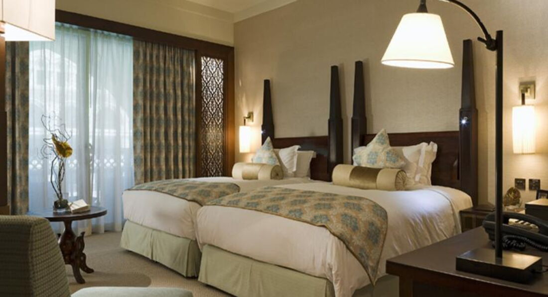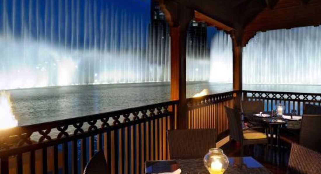 Особенность отеля то, что это городской отель и вокруг него корона из небоскребов, но живописность Burj Dubai (самое высокое здание в мире, 1100 м высотой) и озера сглаживают городское присутствие (озеро кстати из пленки и вода чистая, как в бассейне). Вокруг бассейна всегда играет музыка, даже ночью. Но стоит закрыть двери и ничто не мешает спать.