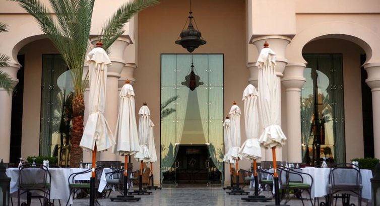 Территория небольшая, если рассматривать ее локально, а не вместе с двумя другими, входящими в отельный комплекс. Очень красивая, стильная, чистая. Много восточных «штучек» - ламп, ковров, ажурных решеток. Фонтаны и ручейки с их журчащей водой создают атмосферу полного релакса.