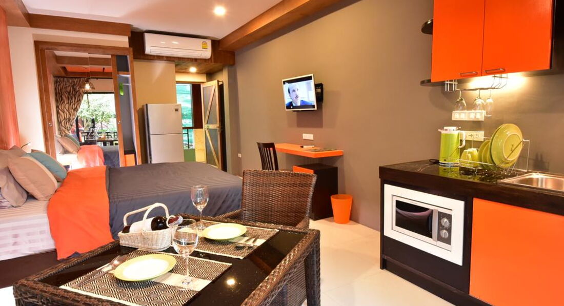 Номери обладнані мікрохвильовою піччю, холодильником, міні-кухнею, зоною відпочинку та пресом для штанів. Ванні кімнати готелю The Palm Delight Coffee And House оснащені душем, туалетним приладдям і рушниками.