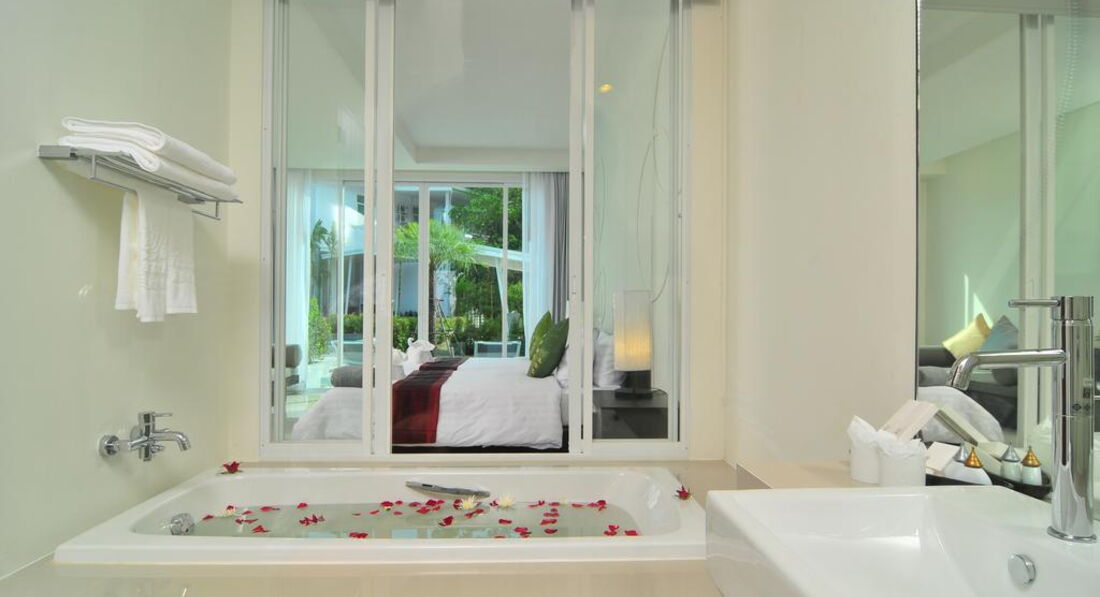 Територія та послуги: • 1 основний (96 кв.м, 08:00 – 20:00) + 6 басейнів для pool access rooms (80 кв.м кожен) • ресторан • бар • Wi-Fi у лобі (безкоштовно) • інтернет куточок з 2 комп'ютерами • пральня Розваги та спорт: • тренажерний зал (безкоштовно) • спа, масаж Для дітей: • басейн (15 кв.м, 08:00 – 20:00) • дитяча кімната • дитяче ліжечко • стільці в ресторані • няня (платно) Живлення: • BB, HB, FB Пляж: Громадський піщаний пляж. Пляжні рушники безкоштовно. Шаттл-бас на пляжі Ката, Карон (безкоштовно, в один кінець)