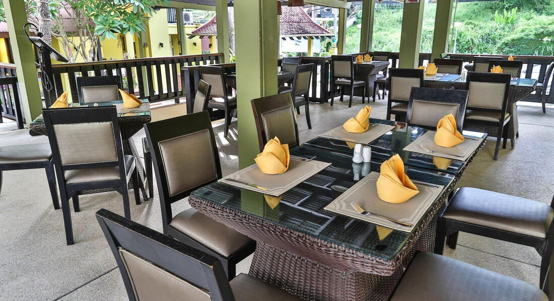 Територія та послуги: • басейн (27 кв.м, 8:00-20:00) • ресторан (07:30 – 21:00) • бар • переговорна кімната (30 осіб) • Wi-Fi у лобі (безкоштовно) • інтернет-куточок з комп'ютером (безкоштовно) • масаж • автопарковка (безкоштовно) • оренда мотобайків (від 300 бат на день) • оренда авто (від 800 бат на день) Для дітей: • басейн (2 кв.м, 8:00-20:00) • дитяче ліжечко • дитячі горщики • стільці в ресторані Живлення: • RO, BB, HB, FB (сніданок-шведський стіл; обід та вечеря (по 2 страви) – по меню; при HB – міняти вечерю на обід не можна) • AI: Сніданок 7:30-10:00; Обід 12:30–14:30; Вечеря 19:00-21:00 – все – шведський стіл; Полудень 17:00: чай, бісквіти, печиво та тістечка; Напої в барі 8:00-22:00: вода, мінеральна вода, кола, фанта, спрайт, чай, чай з льодом, кава, кава з льодом, соки, пиво, вино, горілка, ром, віскі, джин. Пляж: Громадський піщаний пляж. Пляжні килимки в аренду-безкоштовно.