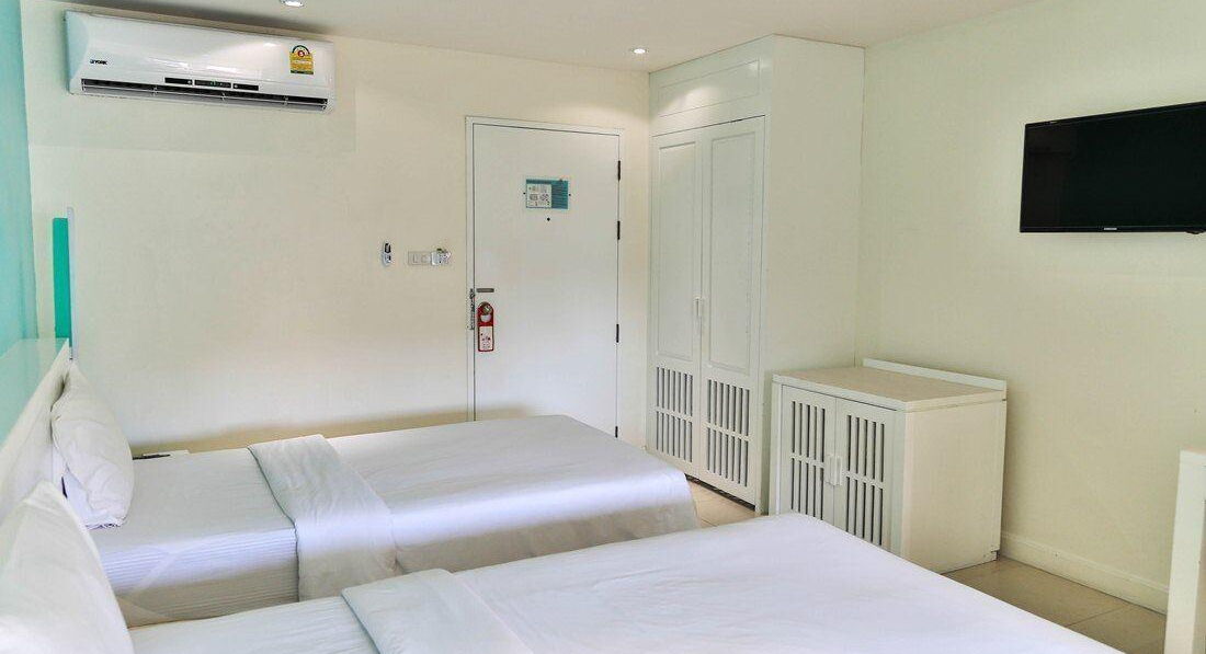 Отель выбирали не дорогой, по этому были готовы ко всему) Но! Мы взяли номер подороже делюкс и когда приехали я лично обрадовалась тк те плохие фото что выкладывают и наш номер разные корпуса нас не обманули ) комната огромная, кровати большие высокие,белье чистое есть сейф,холодильник, чайник,фен, микроволновка, минибар(пиво,вода,лимонады) мыло,гель для душа и шампунь. Плюс у нас были два коврика для пляжа очень полезный бонус) номер убирали каждый день. Жили на 1м этаже окна-двери на садик с пальмами.Питание у нас был завтрак ничено особенного яйца,тосты,хлопья,макароны,сосиски чай соки арбузы мы голодными не оставались. Интернет на рецепции,там диванчики можно посидеть отдохнуть)Отель хорошо расположен не на главной шумной улице,а на маленькой тихой,все рядом кафе магазины до пляжа 10 мин в развалку. Ребята работают приветливые нам помогали когда просили,залог 1000 бат вернули номер даже не посмотрели. Мы довольны номер делюкс рекомендую для бюджетного отдыха.