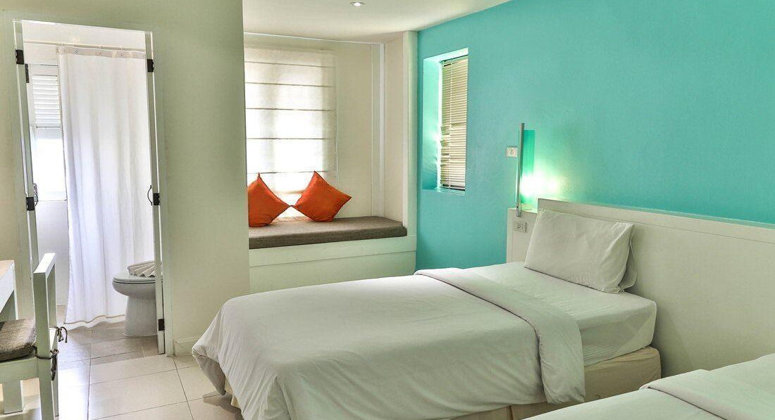 По приезду дали нам номер "стандарт", зайдя в который начали шевелиться волосы на голове. Номер 3кв.м, раковина возле кровати, туалетный столик, телевизор, 1 тумба. Душ и туалет: 2 кв.м, душ отделяется от унитаза шторкой. Поставить принадлежности для душа-некуда! И окно, из самого душа!!! Номер без балкона, даже нет места повесить полотенце и купальник. Вонь сыростью, темно и обшарпано, ощущение, что прошла война, а отель выжил. Побыв там 5 минут пришлось спуститься на ресепшн и просить поменять номер. За доплату 3000 бат нам обещали поменять номер на "Deluxe", чуток поторговавшись, удалось поменять его за 2200 бат.