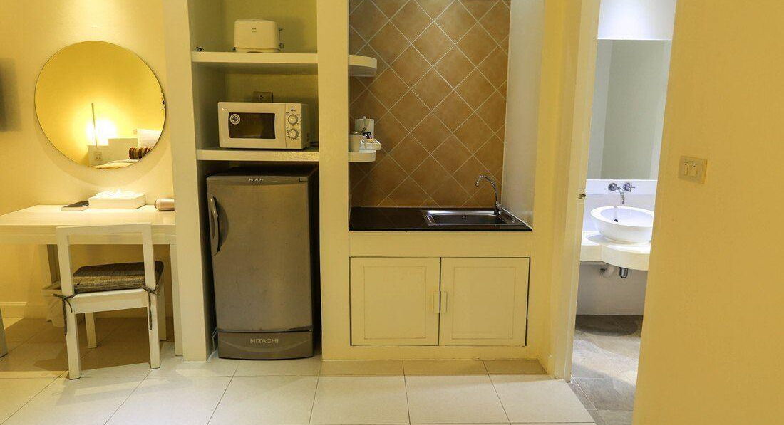 Вся мебель старая, диванчики в лобби у ресепшн ушатанные. В номере не работал холодильник и сейф, за весь отдых никто не починил, хотя просили на ресепшн несколько раз. Вода в душе всегда была холодной, мыться было невозможно. Раковины в туалете не было, но она была у кровати - это тоже он удобно. Балкона не было! Вай фай не работал дня 3 потом вечно отваливался, в кафе и то лучше вай фай чем в отеле. Завтраки ели через силу, кофе пить нереально! Персонал в отеле не приветлив, грубый и ленивый совсем не похож на добрых и улыбчивых тайцев из магазинов или с пляжа.