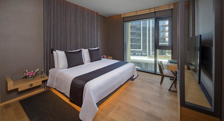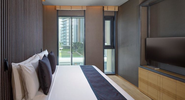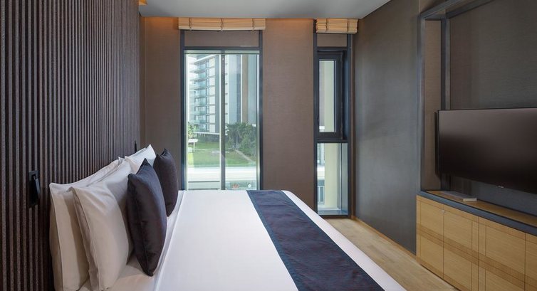 • 10 One Bedroom Residence (76 м2, вітальня, спальня з міжкімнатними дверима, кухня, з частковим видом на море або на оглядове колесо, ліжко king-size, макс. 3 чол.)