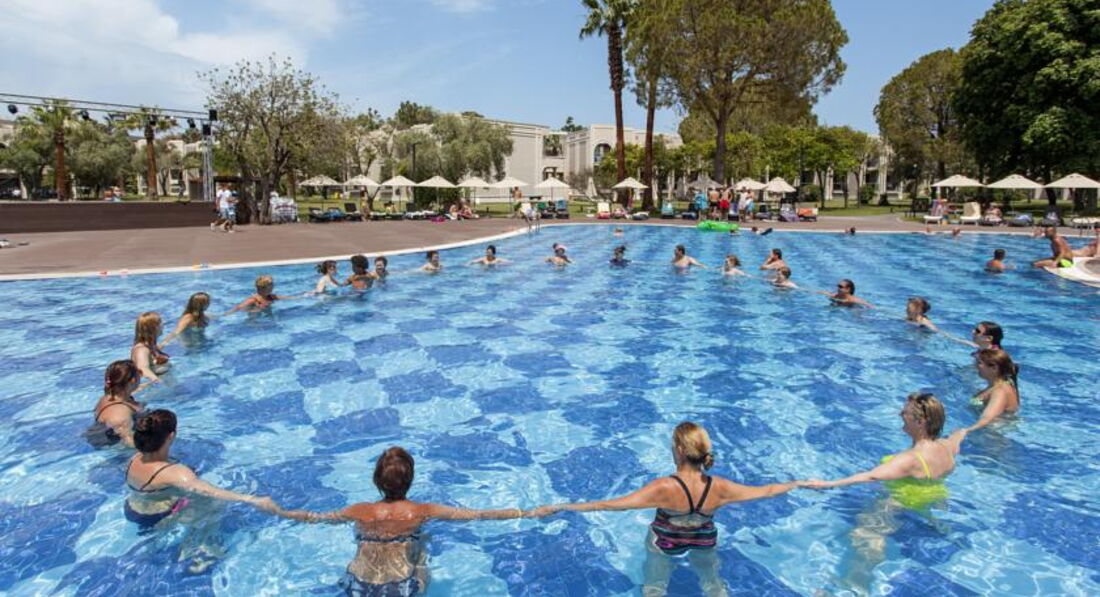 7. Анимация на любителя, нам не хватало спортивных мероприятий. Ходили каждый день на волейбол, где аниматор или сам старался наиграться или сидел и болтал с отдыхающими вместо судейства. На футболе два аниматора, играя в разных командах, состязались друг с другом, забыв про отдыхающих в своих командах((( В детской анимации на вечерней мини-дискотеке танцы явно не для малышей т.к. много сложных движений для детишек 2-4 лет и сами движения в некоторых танцах вызывают легкое недоумение, например: зачем мальчикам и девочкам крутить попой и бедрами во все стороны, а также трясти плечами и грудной клеткой и т.д. Дети постарше 6-12 лет пытаются и даже получается включаться в эту анимацию, а малыши выпадают. Но это, наверно, из-за того что девушка-аниматор - турчанка. В других отелях видели более доступную и веселую вечернюю детскую анимацию, и не только танцы. В целом, слабовата анимация, на мой взгляд.