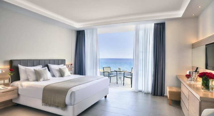• Executive Suite (56 кв.м, ексклюзивний 2-х кімнатний номер з видом на море. В окремій спальні знаходиться ванна кімната з джакузі, а у вітальні з двоспальним диваном є власна ванна кімната з душовою спа кабіною. Кімнати розділені дверима, що дозволяє перетворити номер superior на ще одну спальню.Обидві кімнати виходять на обставлену меблями веранду з панорамним виглядом;максимальне розміщення - 4 чол.)