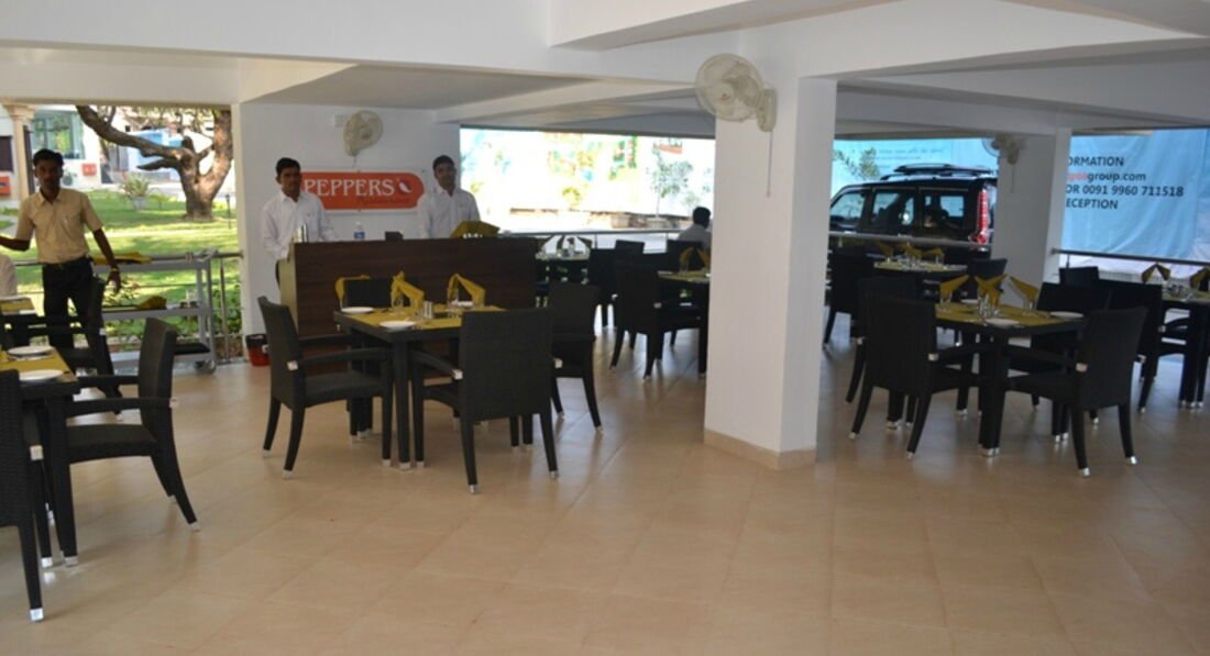 Завтраки - чисто индийские + тосты и хлопья. Арбузный фреш, кофе и чай с молоком. Есть ресторан, который работает круглосуточно, но готовят не вкусно, по крайней мере за три раза, которые мы там ели, не было ничего приемлемого. Небольшие порции, дорогая и невкусная еда. К ценам в меню прибавляются налоги при оплате.
