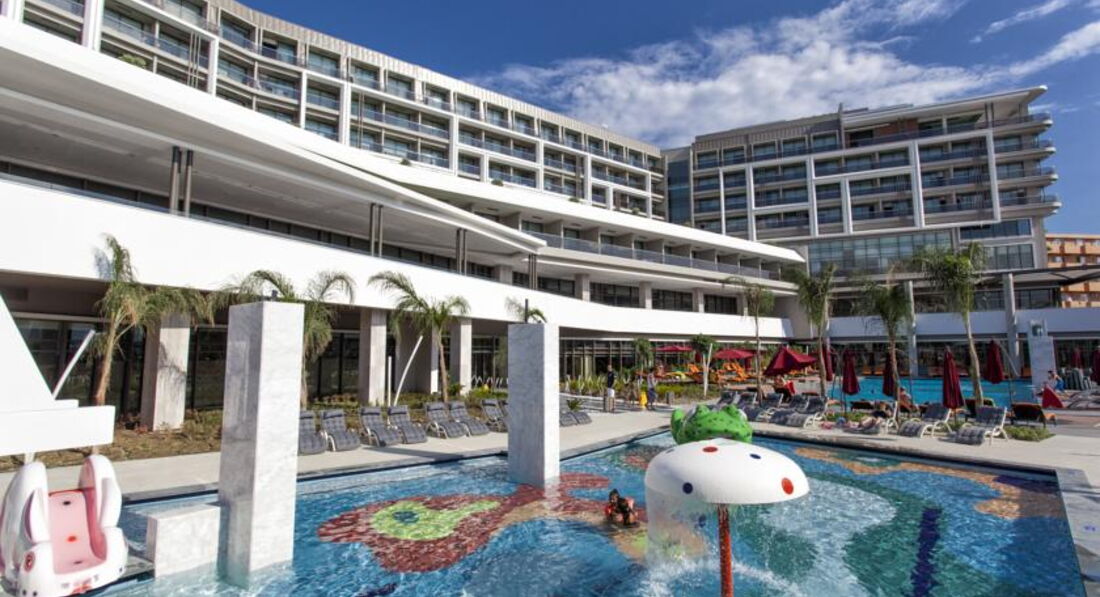 Отдыхали семьей в июне 2017, 14 ночей. Приехали около 15 часов, дорога до отеля не утомила. Заселение сразу. Показали где номер, как добраться и чуть позже принесли чемоданы. Отель новый, красивый, дизайнеры хорошо поработали. Каждый уголок в отеле комфортен. Есть два открытых бассейна для взрослых и один детский, с горками. Отдельно хочу сказать про спа- зону. Вход для детей до 18 туда запрещён. Там есть два бассейна, несколько саун, хамам и парная. Джакузи, зона отдыха, массаж. Очень хороший тренажерный зал, вход с 16 лет. Кухня в отеле разнообразная. Есть и рыба, и мясо. Фрукты, сладкое тоже на уровне. В 15 часов в баре у бассейна есть мороженое и вафли.