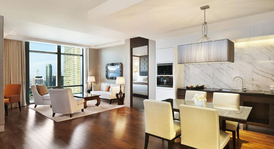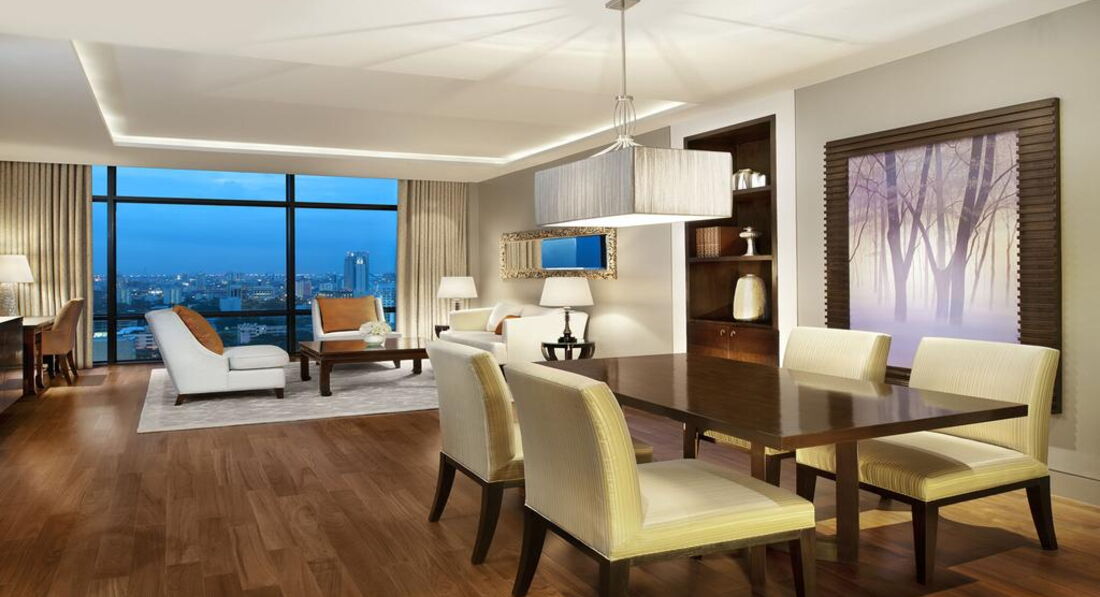 • сейф • ванна та душ • кондиціонер • CD/DVD-програвач • телефон • радіо • капці • фен • міні-бар • Інтернет: платно (Wi Fi інтернет/Plug in інтернет) • халат • послуги дворецької (персональний дворецький, 24 години) • телевізор Територія та послуги: • бізнес центр • перукарня • спа центр • хімчистка • 2 бари • 5 ресторанів • басейн Розваги та спорт: • тренажерний зал (безкоштовно) • тайський масаж (платно) Живлення: • RO • BB • HB До оплати приймаються кредитні картки: Master Card, Visa, American Express, Diners Club.