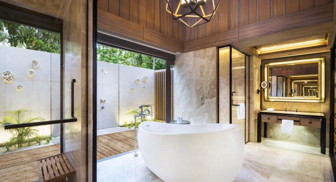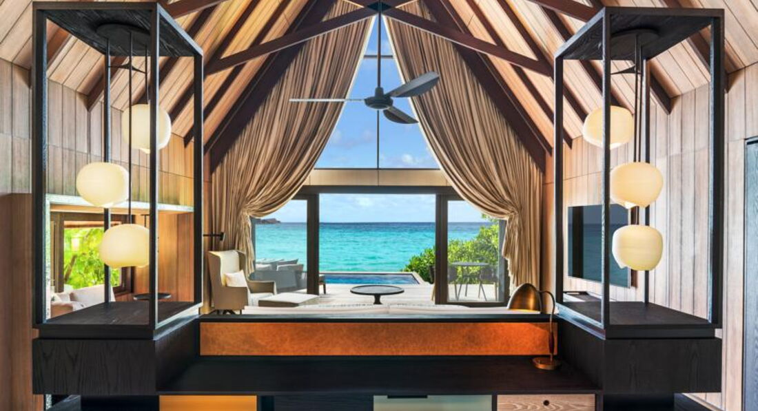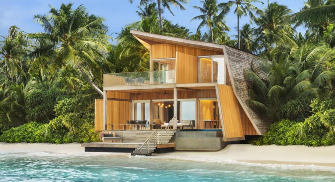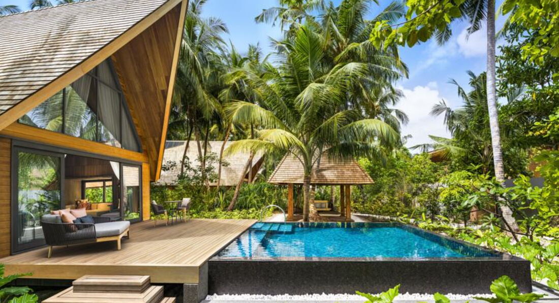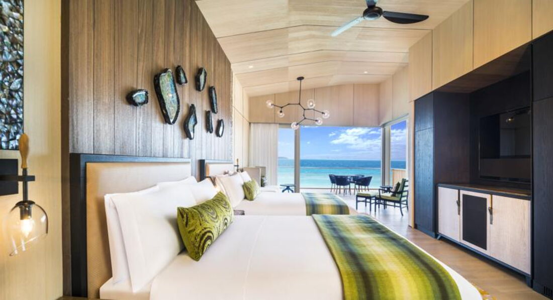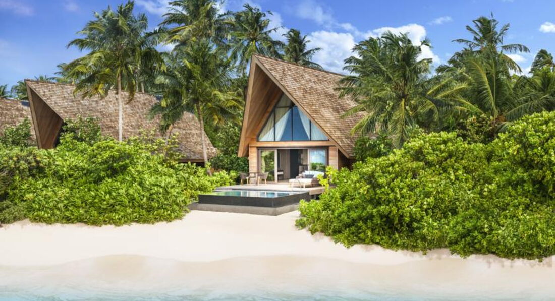 2 Two-Bedroom Beach Suite with Pool (531 м2, макс. 6 чол.). Берегові вілли з прямим виходом на пляж. Дві спальні (одна з ліжком king-size, інша – з ліжками twin), простора тераса з двома басейнами (один «безкрайній»), два зливові душі.