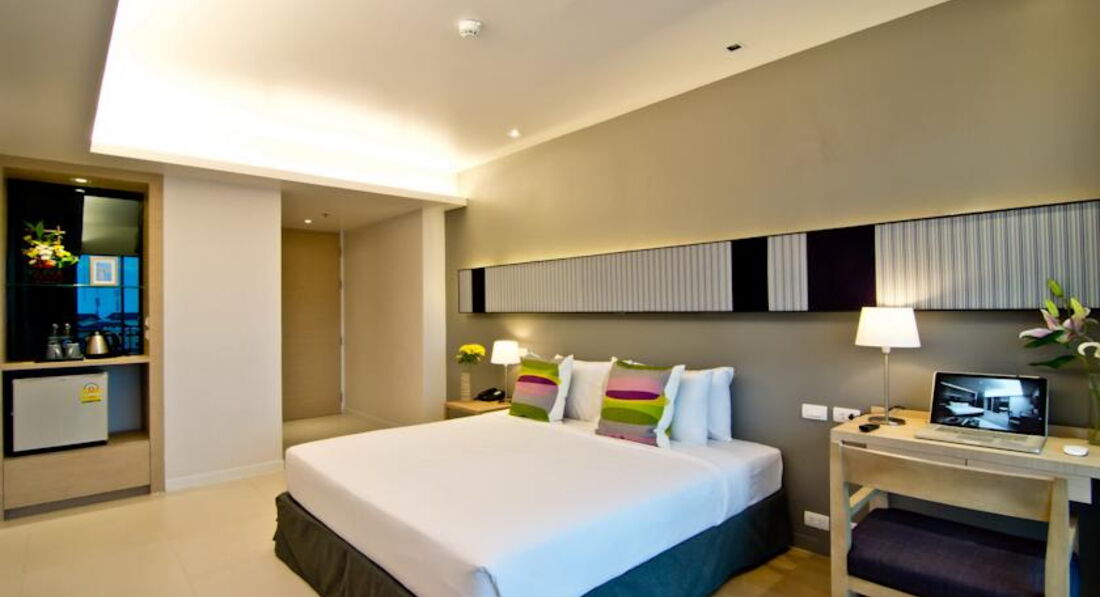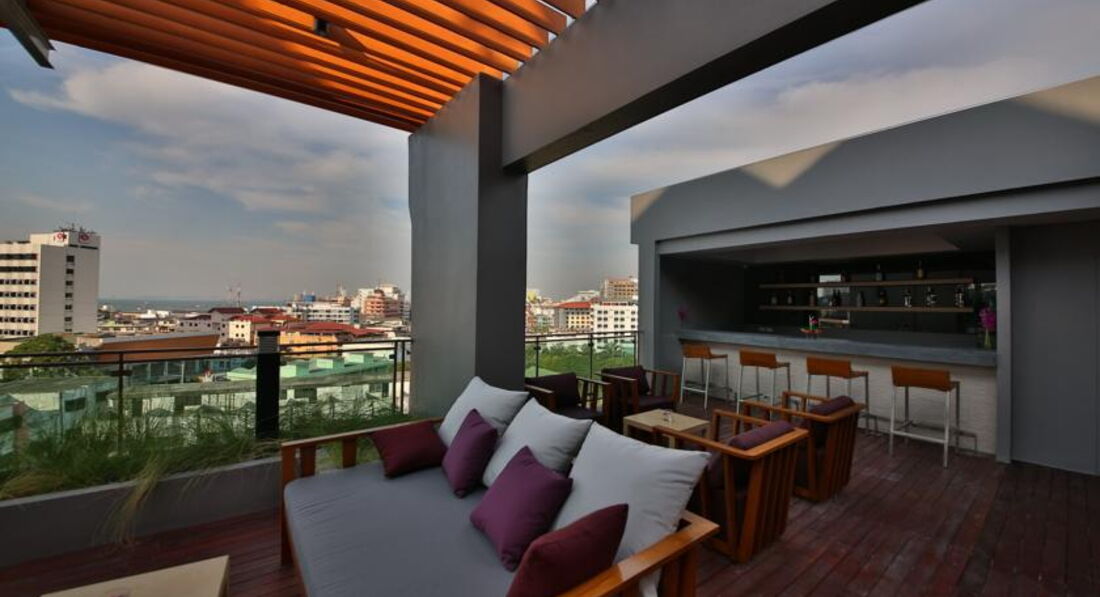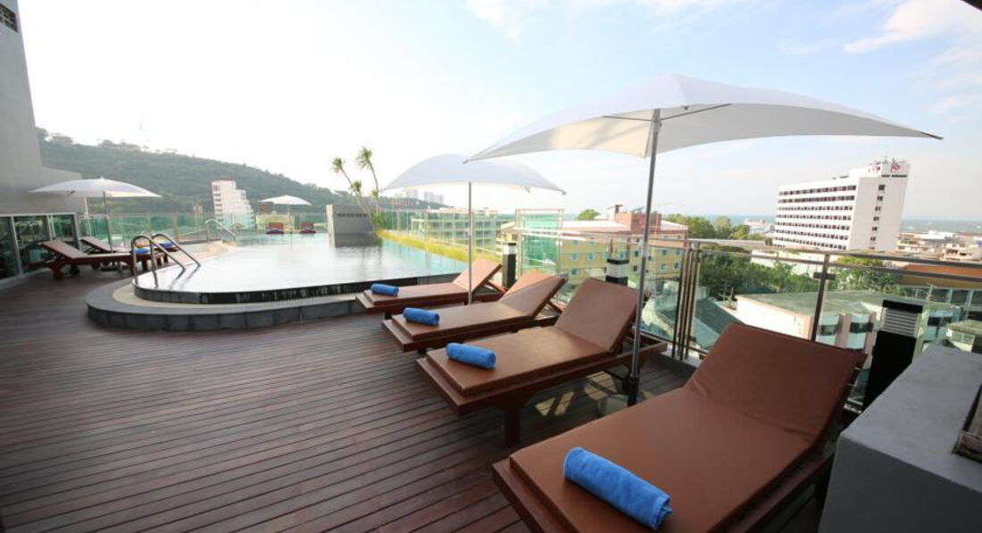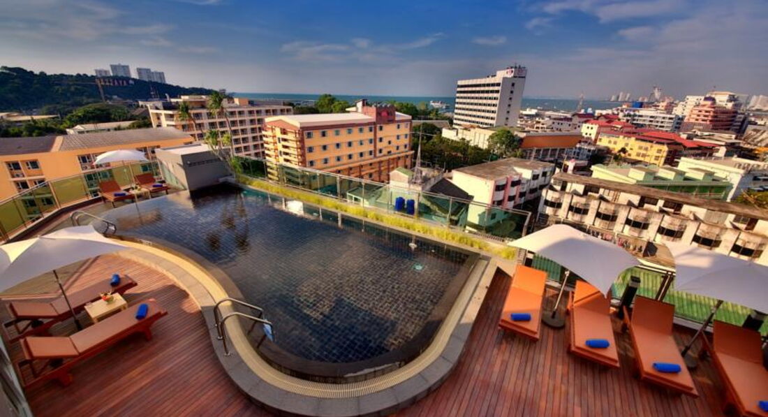 Отдыхала с дочерью-подростком в июле. Брала горящий тур, отель подбирала по принципу - Паттайя-центр, бесплатный wifi, не север Паттайи. Отель оправдал все ожидания. Расположение очень удобное. До пирса 5-10 минут, до Центр-Фестиваля минут 20 пешком. Как говорится, все в шаговой доступности, и транспорт в любом направлении прямо у отеля. Единственное что напрягало - этот район Паттайи заточен под индусов и в все близлежащие кафе предлагают индийскую кухню. Номер отличный, мебель новая, все чисто, постельное белье белоснежное. В номере сейф, минибар, набор для чая\кофе, фен, даже зонтик на случай дождя, пляжная сумка.Огорчило отсутствие сушилки, в душе повесить некуда, на балконе тоже не удобно. Две бутылки воды обновлялись по мере использования. Будьте внимательны, бутылки стеклянные, если разобьете с вас удержат их стоимость. Огорчило только расположение кондиционера - дул прямо на кровать и не регулируется направление потока воздуха. Дочку продуло в первую же ночь. Но и здесь мы нашли выход - повесили парео и жили спокойно дальше. Отель берет депозит 1000 бат, в самом отеле обменника нет, поэтому при заселении пришлось бежать искать где поменять деньги. Я разбила один стакан, так при чекауте с меня удержали 100 бат, предъявив осколки в пакетике (хранили их дней 7 наверное), 900 бат вернули. Бассейн на крыше, вид отличный, правда поднялись мы туда только вечером перед отъездом, на крыше мы были одни, вода в бассейне прохладная, я даже замерзла. По утрам под окнами петухи орут, как в деревне.. Да в отеле нет весов, т.е. перед выездом проверить вес багажа не получится, пришлось в аэропорту проверять. Про завтраки ничего сказать не могу - ни разу не попали. В общем, для отдыха в Паттайе отличный вариант.