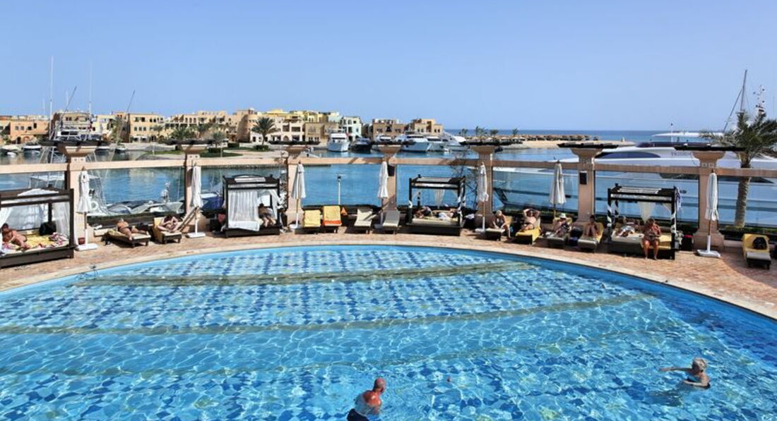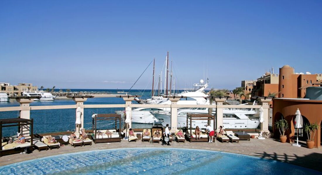 Такого спокойствия и умиротворения я не испытывала давно. когда мы сели на террасе с коктейльчиком на заходе солнца, вот тут я и подумала, а рай то и на земле существует! да действительно, отель для спокойного, я бы даже сказала ОЧЕНЬ спокойного отдыха.контингент в отеле были шведы, норвежцы, немцы, эстония тоже, ну и парочка тройка русских. основной возраст за 50-60. но сразу хочу оговориться, если нужно веселье, диско... это тоже присутствует (вход был бесплатный).когда мы прогуливались по марине нас приглашали вечером послушать живую музыку в одном из ресторанчиков.днем, пока мы загорали на пляже. к нам подходили с предложением на виндсерфе покататься, с 10 утра стабильно бочча на пляже , восточные танцы, аквааэробика в бассейне. кстати бассейн подогреваемый.вообщем , анимация присутствует.а когда мы шли до песчаного пляжа мимо белоснежных яхт, меня не покидало ощущение, что мы вовсе не в египте, а где-нибудь в каннах или ницце.кстати до песчаного пляжа ходит шатл. но, товарищи, какое это удовольствие прогуляться до него пешочком мимо белоснежных красавиц . питание в отеле нормальное.видела лучше. однако с голоду никто не умирает.омлет, свежие овощи, пицца, блинчики, сладости конечно, тосты, шаурма, салаты, мясо, курица, рыба - все это в течение дня вы увидите.в баре коктейли, спиртные напитки, но за бесплатно только ром, водка, виски (кстати как и во многих отелях египта по системе All).свежевыжатый сок присутствует за завтраком, за доп. плату 2евро или 3 доллара стакан.но мило пообщавшись с метродотелем мы получили стаканчик бесплатно. помните , что улыбка и вежливость творят чудеса. как вы относитесь к людям так и они будут к вам относиться. номера понравились.большие.фото на сайте соответствуют действительности.хорошая мебель.сейф, минибар в номере, фена не обнаружили, но по-моему можно взять на ресепшен.TV каналы не очень хорошо ловятся. бывают перебои.очень важный момент - не вовсех номерах балкон. а также есть номера с французским балконом и номера с нормальными балконами.каждые 15 мин от отеля ходит шатл до Down Town (небольшой туристический центр в 5 минутах езды от эльГуны) - там есть всякие ресторанчики, магазины.проезд стоит 5 фунтов в одну сторону (или 1 доллар). а уже от Down Town можно добраться до хургады на автобусе тоже за 5 фунтов.такси из Эль-гуны в хургаду стоит 10 долларов в одну сторону.персонал не говорит по русски. парочка официантов может знают несколько слов.этим все и ограничивается.я этот отель советую туристам, которые устали от суеты и хотят спокойствия, а также молодоженам. вообще Эль-гуна оставила приятные впечатления.отдых для туристов, которые предпочитают европейский сервис.
