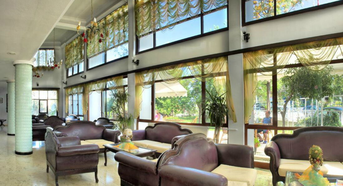 Отель на 4 звезды никак не тянет, с натяжкой 3, а по факту 2 звезды. Территории у отеля нет, 2 бассейна, один из них находится на крыше и он очень маленький, а второй вообще через дорогу и этот бассейн для жителей близлежащих пятиэтажек, вообщем там после обеда купаются местные турки и их дети. Еда в отеле ужасная, очень однообразная, среди фруктов практически всегда был один арбуз. В отеле отдыхают один иностранцы в основном люди кому за... Анимация полностью отсутствует, за все время, что мы там были 1 раз выступала девушка с восточным танцем и старикашка с ложками. Единственный плюс этого отеля, что он находится в центре города и рядом очень много всяких кафешек, ресторан на берегу моря и рынок, а также целая аллея баров, тобишь ночных клубов. От отеля до городского пляжа минут 15-20 хотьбы, но пляж ужасный, сломанные лежаки и куча мусора. Есть хороший пляж, до которого нужно ехать на маршрутке минут 10-15, но там платные лежаки и зонтики по-моему лир 15. Никому не советую этот отель!!! За путевку заплатили 20 тысяч и там потратили еще 20, но такой отдых этого не стоит вообще, лучше ехать в 5 * и ни в чем там себе не отказывать, с детьми в таком отеле вообще невозможно.