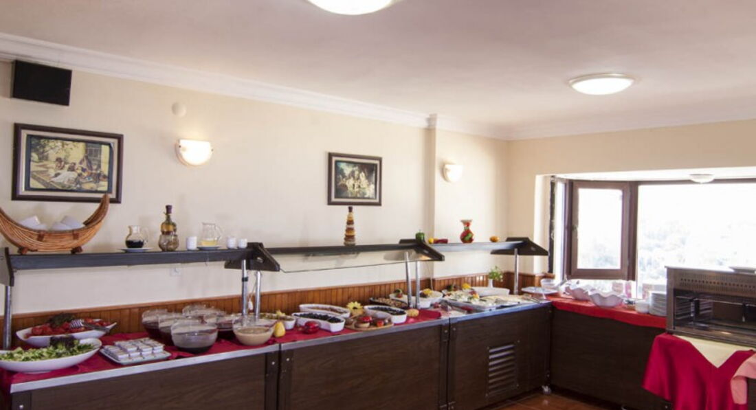 3. Еда. Ну тут спорный вопрос, нас все более чем устраивало, но если вы хотите огромного разнообразия, то там его нет. Вся еда европейская. Очень много здоровой пищи: запеканка из шпината с яйцами, капуста брокколи, куриные грудки, овощи жареные в собственном соку, много помидоров и огурцов, салаты из свежей капусты, маринованные огурчики, супы, котлеты, тушёное мясо, часто фаршированные баклажаны и многое другое (Картошка вареная, тушеная и фри и т.д.). Из фруктов: апельсины, сливы, яблоки, черешня, клубника, арбузы и дыни. Сладкого практически нет, два вида какой то местной выпечки, которую я не пробовала, что то на подобии панакоты, пару раз был абалденно вкусный шоколадный торт. Единственное что, завтраки не очень плотные, но нам это не сколько не мешало. На завтрак тосты из очень вкусного и свежего хлеба, с маслом, медом или джемом (вишня, клубника, апельсин), омлет или яичница с жареными колбасками. Кофе из автомата, но очень даже не плохое, хотя я к этому очень придирчива, так как люблю кофе. Соки не натуральные (вишня и апельсин). Воды сколько хочешь, в бутылках, мы забирали в номер и ставили в холодильник. В баре пиво, джин, водка, раки, колла, спрайт и фанта.