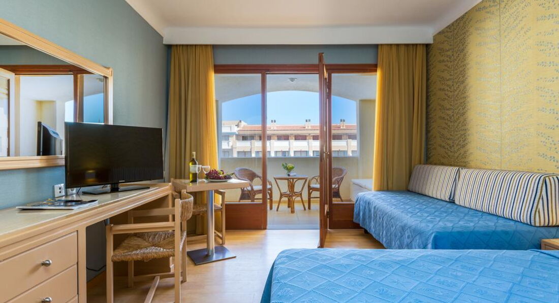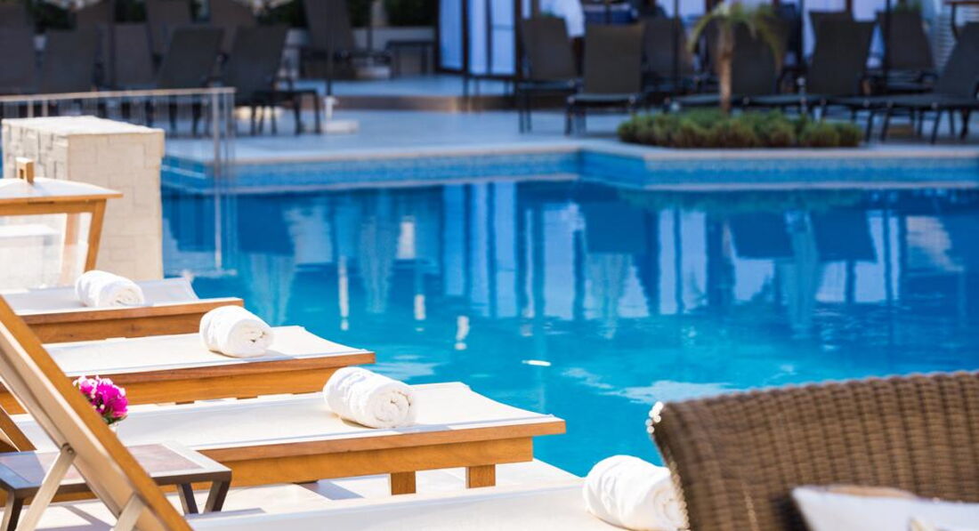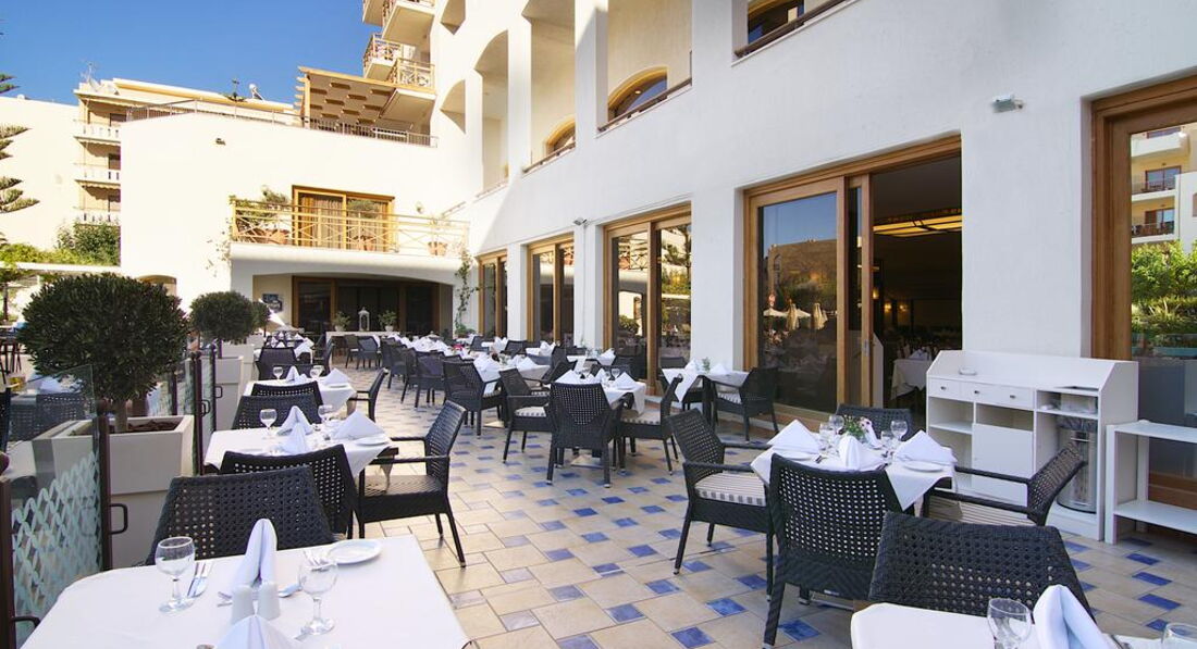 Територія та послуги: основний ресторан Daphne (місцева та міжнародна кухня, 07:00-10:00, 12:00-14:30, 18:30-21:30, макс. 270 чол.) a'la carte ресторан Semeli (місцева та інтернаціональна кухня, 12:30-15:00) лобі-бар Ariane (17:00-00:00) кафе Semeli (09:00-23:00) бар біля басейну Arbona (09:00-17:00) конференц-зал (100 м2) wi-fi у лобі магазини обмін валюти інтернет кафе пральня прокат велосипедів оренда авто Розваги та спорт: 2 відкритих басейни (180 та 80 м2) критий басейн із підігрівом у низький сезон джакузі анімація настільний теніс більярд тренажерний зал ТБ-хол Спа центр масаж водні розваги на пляжі Для дітей: дитячий басейн ліжечко в номері стільці в ресторані Живлення: HB - сніданок та вечеря. FB – сніданок, обід, вечеря. AI - "все включено". Концепція AI включає: Сніданок, обід та вечеря в основному ресторані, за попередньою резервацією, можлива вечеря в ресторані a'la carte. Напої, доступні за концепцією: місцеве вино (біле, рожеве, червоне), пиво, безалкогольні прохолодні напої, кола, спрайт, лимонад, чай, кава, сода. Для гостей AI можна придбати пляшкове вино зі знижкою 20%. *Замовлення на ланч-бокси приймаються заздалегідь, за 1 день, до 14:00, також оплачується депозит 10 EUR. Пляж: Громадський піщаний пляж за 200 м від готелю. Парасольки, шезлонги – платно, пляжні рушники під депозит. До оплати приймаються кредитні картки: Visa, MasterCard, AmEx.