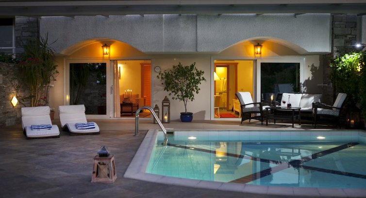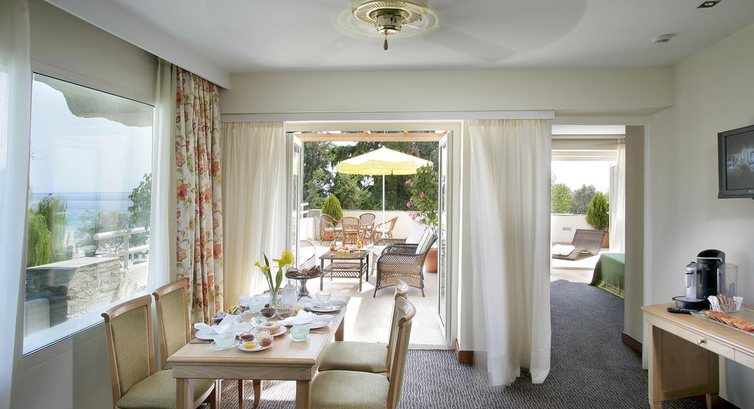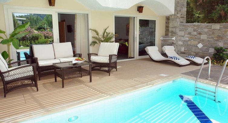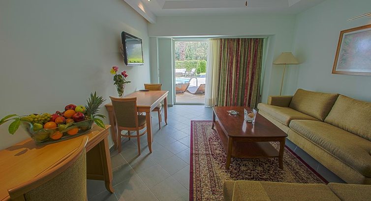 Anatoli Club Suite with Shared Pool Спальна зона з двоспальним ліжком; вітальня зона з диваном, велика ванна кімната (ванна з джакузі, окремий WC та біде). Загальний басейн на 10 сюїт. Anatoli Executive Suite with Shared Pool Загальний басейн на 7 сюїт. Велика спальня з вітальнею, друга спальня, гардеробна, велика ванна кімната з ванною-джакузі, 2-а ванна кімната з душовою кабіною, хамам.У номері: Балкон/тераса Ванна/душ Вид з номера: вид на море або садочок Килимове покриття Кондиціонер Міні-бар Російський канал Супутникове ТВ ТБ Телефон Фен Халат і тапочки Холодильник