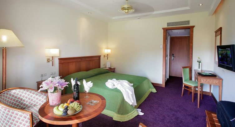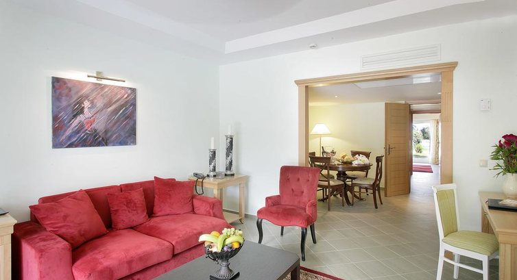 Всього 151 номер: Deluxe Rooms (~28 кв.м), Deluxe Suites (~60 кв.м), 15 Grand Pool Suites (~60 кв.м), 2 Penthouse Deluxe Suites (~100 кв.м), 4 Imperial Suites Private Pool (~120 кв.м); 18 Anatoli Suites: Anatoli Club Suite із Shared Pool (~45 кв.м), Anatoli Executive Suite with Shared Pool (~90 кв.м). Типи номерів: Deluxe Room Інтер'єр у теплих тонах. Двоспальне ліжко королівських розмірів, ванна-джакузі. Deluxe Suite Інтер'єр виконаний у пастельних тонах. Окрема спальня з великим двоспальним ліжком королівських розмірів, вітальня-друга спальня для дітей, велика ванна кімната (ванна з джакузі), друга ванна кімната з душовою. Після прибуття – вино, фрукти в номер. Grand Pool Suite with Private Pool Розташовані на 1-му поверсі (Ground Floor). Приватний басейн, тераса з видом на сад. Інтер'єр у пастельних тонах. Окрема спальня з двоспальним ліжком королівських розмірів, вітальня-спальня для дітей, велика ванна кімната (ванна з джакузі), друга ванна кімната з душовою кабінкою. Після прибуття – вино, фрукти в номер. Penthouse Suite Великий балкон з видом на море. Інтер'єр у пастельних тонах. Головна спальня з великим двоспальним ліжком королівських розмірів, друга спальня з двома роздільними ліжками, затишний салон з обідньою зоною, велика ванна кімната (ванна з джакузі), друга ванна кімната з душовою кабінкою, набір для приготування кави та чаю, 2 телевізори, вечірній . Прибуття: вино, фрукти в номер. Imperial Suite with Private Pool Розташовані на 1-му поверсі. Велика спальня з двоспальним ліжком, вітальня, 2 окремі спальні, 3 ванні кімнати з ванною-джакузі, ванна кімната з душовою кабіною, телевізор у кожній кімнаті, вечірній сервіс, тераса з приватним басейном. Суміжні Deluxe Suite та Grand Pool Suite with Private Pool.ANATOLI SUITES