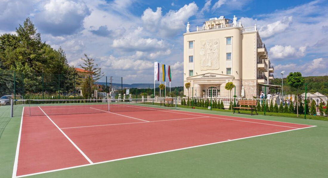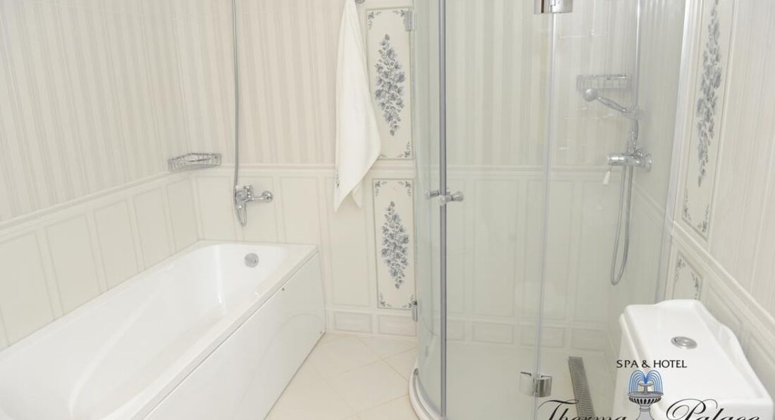 Хочу поделиться впечатлением об отдыхе в отеле Терма Палас. В Болгарии отдыхали впервые. Отель маленький и очень уютный. Стандартные номера очень большие и красивые. Мебель новая, выдержана в одном стиле. Номера выходят на море, но есть 4 торцевых номера. Замечание по комнате - плохая сантехника. Ванную отделяет стекло, шторки и душевой кабинки нет, душ расположен так, что когда им пользуешься, стекло не спасает, вся вода остается на полу, целое озеро, а когда душ примут три человека, целое море) надо добавить, что полотенца для ног не дают, только для лица и банное. Поэтому пр ходилось на пол бросать банное полотенце и было не очень приятно осознавать, что многим приходится тоже так поступать. Добавьте в набор полотенца для ног или коврики в ванную. Так же в нашей комнате не работал слив-перелив у умывальника.