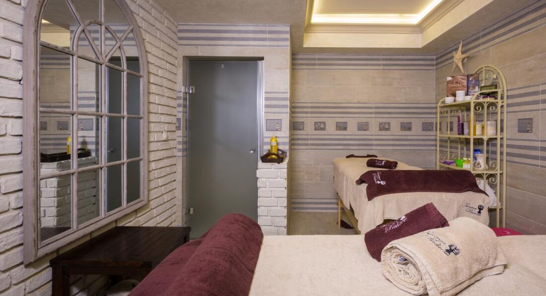 Спа центр располагает к полному релаксу. По системе все включено несколько бассейнов, все с минеральной водой. Финская сауна, соляная комната, фито сауна, хамам, снег, массаж ног. За доп плату разные массажи и другие процедуры. Неприятный инцидент произошел в последний день. Записалась в спа на массаж и маску лица, мне озвучили цену 30 лев если болгарская косметика и 50 лев, если Франция. Пришла к косметологу, она мне сказала, что лучше сделать Францией, я согласилась. Когда процедура была сделана, она мне озвучила 95 лев. Так что с косметологом будьте бдительны. Остальные работники спа мне понравились.