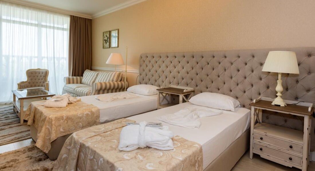 Отдыхали в отеле с 8 по 15 июня 2014 года с компанией из семи человек. В день приезда много было недоделок, хотели искать другой отель, но рискнули и остались довольными! К счастью наш отдых прошёл до трагедии, которая случилась после нашего отъезда (наводнение). Размещение в номерах с 14:00 часов, номера ВЕЛИКОЛЕПНЫЕ! Горячая вода поддавалась нормально, было несколько перерывов, но через пару часов было востановленно. Вай-фай в номере ловил очень даже хорошо. Особое спасибо работникам кухни. Так как отель был полностью не заселён, питание готовилось по-домашнему. В других отелях Болгарии и шведские столы в Турции питание конвеерное. Рыба жаренная, отбывные, мясо тушонное, суп куринный-не пюре. Каждый день в ассортименте всегда присудствовали цитрусовые, овощи и фрукты. Дорога на море хоть и занимает минут семь, зато проходит через парковую зону, где ароматы скошенной травы и запахи цветущих деревьев переплетаются со свежим воздухом моря что даже хочеться пройтись, а не ехать на электро-каре.Познокомились с замечательной семьёю с Украины.Они оставили первый отзыв, который точно характерезует данный отель. Замечательное SPA. Кто что ищет и желает получить от отдыха, кто просто расслабляется, а кто ищет отбитую штукатурку и трещенку на кафеле. Отключитесь и получайте удовольствие от новых встречь, от теплого моря, весёлого бармена и доброжелательных работников рецепции! Мы сняли даже маленький фильм, кому интересно можете посмотреть. Вот ссылочка: https://www.youtube.com/watch?v=FtqbpcSdFFE