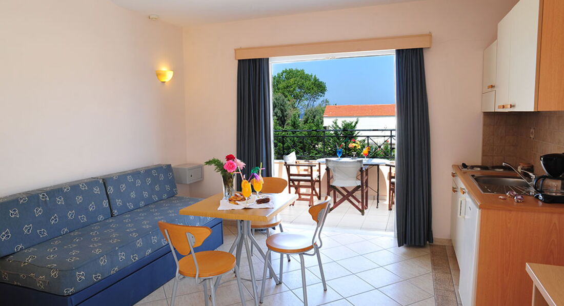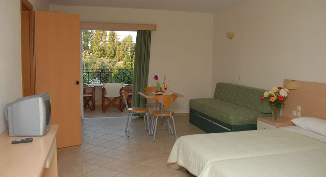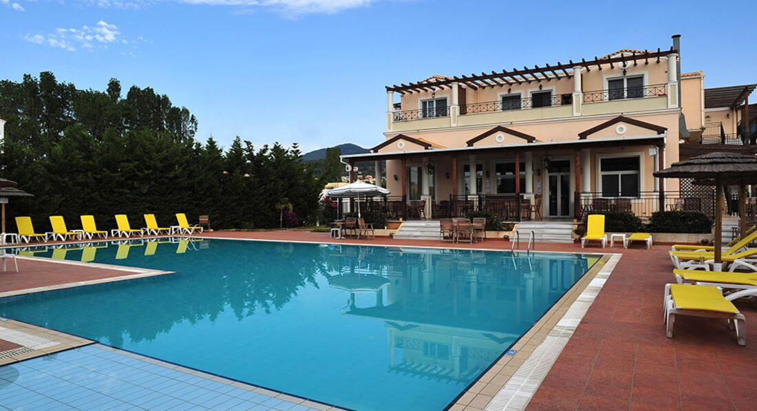 Невеликий готель за два кроки від пляжу. Затишна територія з садом та басейном, сучасний стиль, просторі комфортабельні номери з кухнею, тепла домашня атмосфера. Поблизу розташовані магазини, бари, таверни. Гості готелю можуть насолоджуватися послугами готелю Ionian Princess Club.