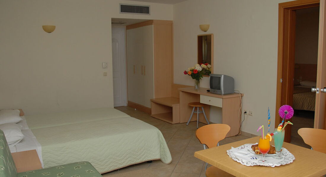 Всього 30 номерів: Studios (~35 кв. м), Apartment 2-Brooms (~48 кв. м). Типи номерів: Studio Кухня, 2 односпальні ліжка та 2 дивани. Apartment 2-B rooms Вітальня та 2 спальні – з суміжними дверима. У вітальні – кухня та стіл, в одній спальні – двоспальне ліжко, у другій – 2 дивани.У номері: Балкон/тераса Ванна/душ Кондиціонер Кухня: ел. плита з 2-ма конфорками, чайник, посуд Російський канал Супутникове ТВ ТБ Телефон Фен Холодильник Чайник