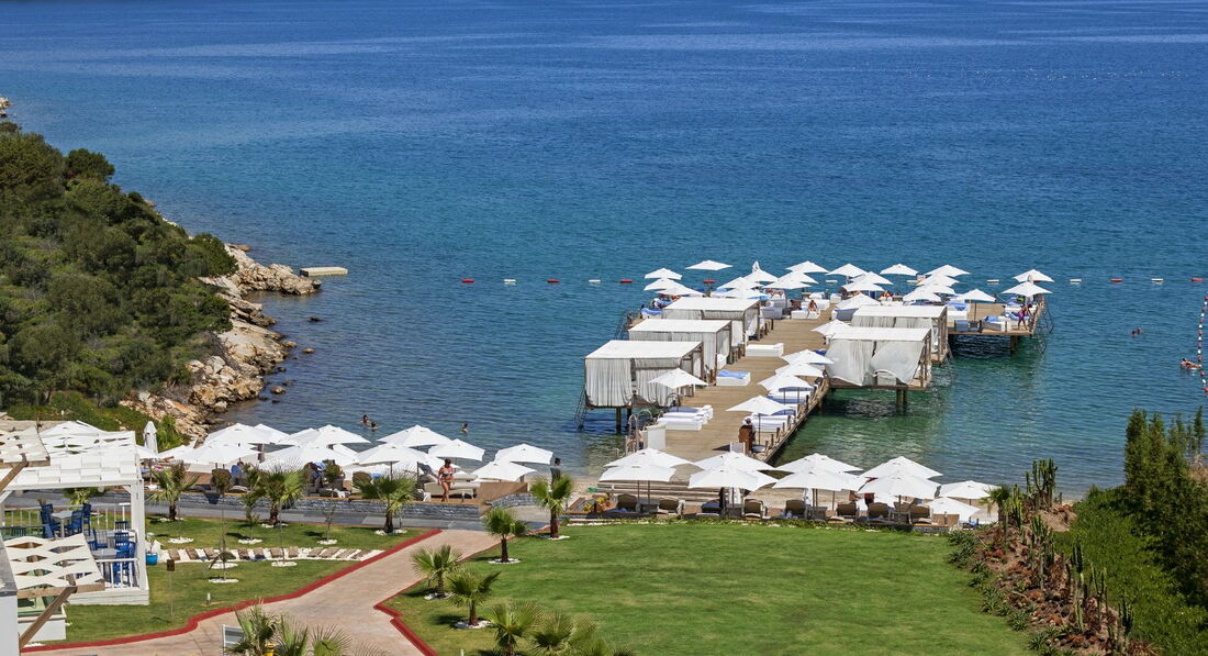 Розташування: за 25 км від аеропорту і за 6 км від центру Бодрума, за 2 км від селища Торба, на березі моря.