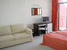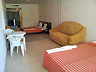 Мне достался номер на втором этаже (по-русски - на третьем). Балкон выходил на улицу, на которой порой бывало довольно оживленно. Мебель в номере: две кровати, шкаф, стол, холодильник. Через неделю моего прибывания принесли стул. Также был чайник, через неделю вместе со стулом принесли два стакана. На балконе стоит хлипенький столик и два не менее хлипеньких стула.