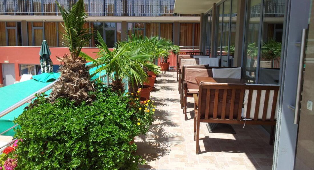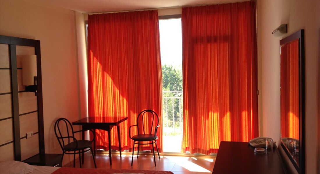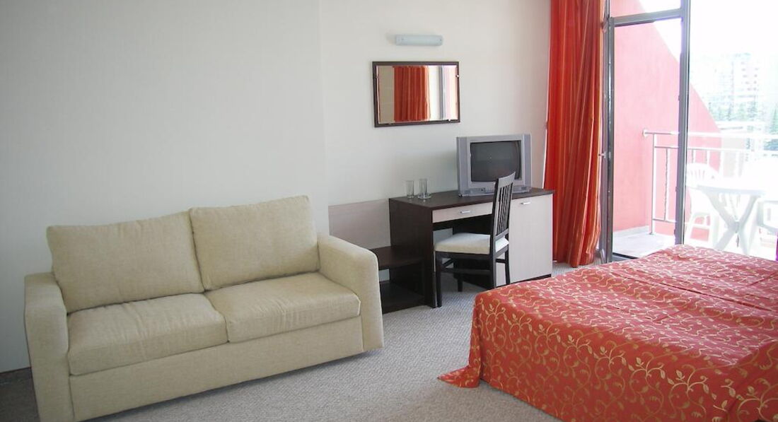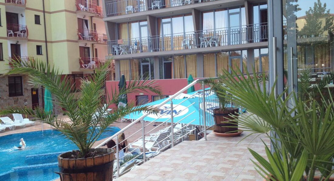 Типичный отель 3* в Болгарии. Заселили быстро , просто дали ключи и сказали , где проходит завтрак. Как писалии ранее , доброжелательности от персонала не дождетесь. С номером повезло , был 5 этаж с видом на город. достаточно тихо за окном, но очень шумно в номере. стеныбудто картонные. слышно все , как ночью возвращаются веселые отдыхающие, вечно хлопабщие двери , как соседи смывают воду в туалете. при первом осмотре номера поразило, что нет ни кусочка мыла- никакого. Мой руки , чем зочешь , пришлось за свои деньги покупать мыло. Не работал пульт от телевизора, купленные батарейки не помогли. Чайник тоже был сломан ,когда хотели подогреть , пришлось руку держать на кнопке, чтобы вскипятить его. Ковролин очень грязный, весь в пятнах, ходили исключительно в пляжных тапках, иначе, не ступить. Запах стоит не приятный. Постельное белье ,вроде , чистое , но все в волосах. Что жутко не понравилось -это то , что уборку номеров начинают делать где-то часа в 3. Мы всегда к жтому времени возвращались с пляжа в номер , нормально не переодеться , не помыться. В любой момент могут к тебе зайти. Таблички нет , чтобы повесить на дверь " не беспокоить ". Порой просто выставляли мусор и брали туалетную бумагу . ничего больше они и не делали. Завтрак обычный, но очень много людей, все толкаються, но место всегда можно найти ,где сесть поесть. Вот про лежаки такого не скажешь , надо встать в 7, чтобы забить лежак, в 9 свободных уже не было.С лифтами беда, при нас один ломался раза три. Брали только завтрак , о чем не пожалели. Лучше, если захотите , доплатить на месте за ужины или все включено. Плюс есть -интернет работал отлично , в холле и в номере. Расположение не плохое, единственное, что к морю и в центр надо переходить через дорогу. В магазин ходили Младость , там цены одни из самых низких на солнечном берегу, да и выбор большой.