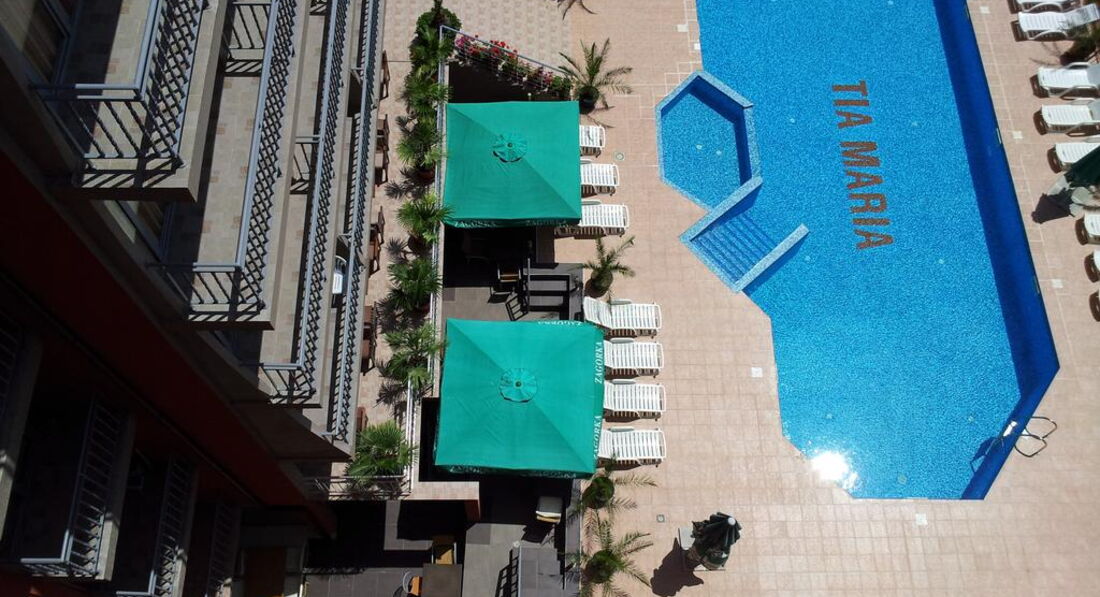 Добрый день! Отдыхали в отели с 22 июля по 29 июля 2013г, только прилетели, отличное настроение, куча эмоций! Болгария отличный курорт!!! Тиа Мария великолепный отель!Отдыхали с детьми, номера огромные,светлые!Бассейн чистый, просторный,кормили вкусно-фрукты, первое, второе разнообразие блюд!В номере уборка каждый день,фен,кондиционер,холодильник,несколько полотенец!В Болгарии в основном иностранцы,что с одной стороны очень хорошо!До моря 5-10 минут ходьбы,кругом одни сувенирные лавочки, супермаркеты,рестораны,где кормят отлично,порции огромные по 500г на каждого,цены низкие (примерно 300руб. на человека или 10-15 лева)! Всем советую оказаться в Болгарии-цивилизованная страна!