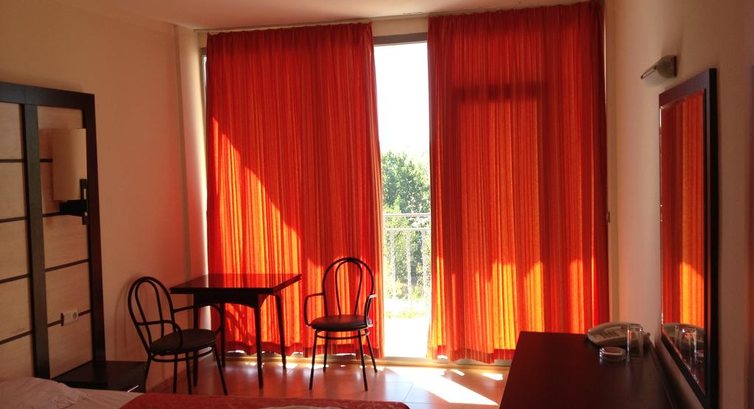 В целом, мы ехали смотреть и купить недвижимость, и к отелю больших требований не имели, так как находились в нем немного времени. За эту цену (14 000 за одного на неделю) - вполне заслуженная оценка "4". Расположение отличное, пешком - 20 минут до центра, а на автобусе - минут 15 до Несебра в обратную сторону.
