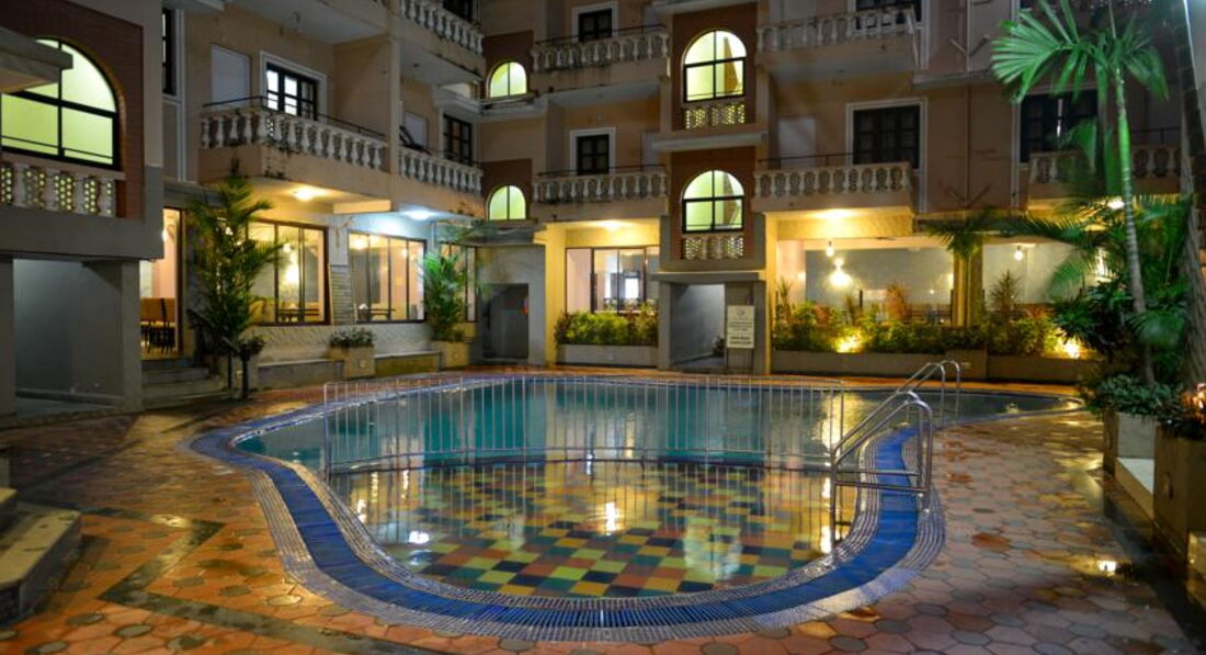 1. Удачное расположение. Стоит вдоль дороги, ведущей на Багу в одну сторону и Кандолим в другую. Море рядом, тибетский рынок, фруктовый и рыбный в шаговой доступности. Автовокзал через дорогу.2. Номер был на 4 этаже. Двух комнатный с видом на бассейн. Скромно, аскетично. 2 кровати, шкаф, зеркало. Во второй комнате минибар, телек, мойка, и журнальный столик с парой кресел. Огромный плюс в том, что холодильничек и сплит не отключаются, когда уходишь из номера с ключем. Теплая вода практически всегда, кроме раннего утра, т.к. греется от солнечных батарей. Для того чтобы помыться и переночевать вполне достойно. 3. Бассейн чистят каждое утро. Он не большой, купаются в основном индусы. 4. Завтрак стандартный 7.30 до 10. Кофе, чай, хлопья с молоком, лепешки, омлет, тосты, масло, джем и индийские бобы с карри соусом. Пару раз ужинали в отеле. Вкусно, но в шейках и кафешках дешевле, т.к. в отеле берут 12.5 % от счета за обслуживание. Рядом за автовокзальной площадкой находится кафе Тибет. Когда уставали от шейков, ужинали там. Средний чек 350 рупий за хороший ужин с пивом. 5 Wi fi бесплатный с 17.00 до 22.30, скорость нормальная. Т.к. номер находился над ресепшеном добивал до номера. 6.Купаться ходили не на сам центральный пляж Калангут. А уходили от отеля вправо. В ресторан beach queen. Туда же ходили ужинать и танцевать. Очень душевное место. Wi fi, лежаки, полотенца бесплатно. Есть душ, туалет. Официант Джимми и хозяин Валентино говорят по русски. Меню на русском. Стоят камеры, за сохранность вещей можно не беспокоиться. Порции большие и очень вкусно. 7. Ездили самостоятельно в Хампи. Вся поездка обошлась в 6000 рупий. 8. Передвигались на такси. Второй раз ездим с этим таксистом, зовут Майор. Не плохо говорит по английски. Кому надо могу дать телефон.