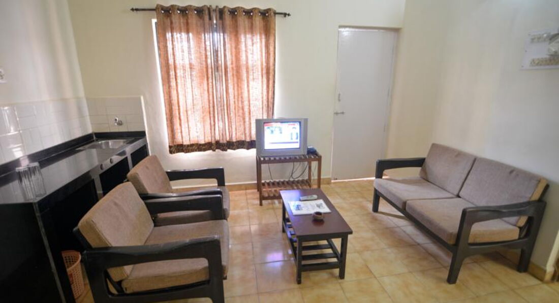 Досталась 721 комната на 3 этаже с кондёром, хотя оплачивали без - приятный бонус. В номере телек, без русских каналов, 2 комнаты, душ-туалет совмещенные, вода как горячая так и холодная была всегда. Кровати как ни странно удобные. В номере убирают по запросу, когда оставляешь ключ на ресепшене. Если что-то не работает обязательно быстро починят. Минибар по демократичным ценам - проверяется при уборке(если уборку редко заказывать можно самому пополнить, пломб фирменных нет). В Столовой всегда работает кулер с питьевой водой - можно реально сэкономить на питьевой воде набирая из него в бутылки свои, если попросить - дадут в номер тарелки, вилки, ложки. Вода из-под крана вроде норм - чистили зубы - не проносило, но пить не рекомендуется всё равно:) Бассейн ежедневно чистят сутра и вечером кидают хлорку. Иногда гоняют, если пьешь своё на лежаках - не обязательно афишировать правда. Днём с 3х до 6-30 счастливые часы: 3 по 0.33 пива кингз 130 рупий, в магазе МРЦ 40 каждого - выгодно брать. На калангуте где ближайший выход в Море из отеля - даже не пытайтесь идти, там жесть из приезжих индусов из местных деревень: все мечтают заселфиться с белым человеком, можно попробовать по 10 рупий с каждого брать и заработать:))), направо ходили на багу, метров 700. Ближайший шек blue coconut цены не очень высокие много русских, индусов не много. У меня на телефоне местный отельный вай-фай постоянно зависал и требовалось переподключиться, на планшете нормально работал, почему - так и не понял.