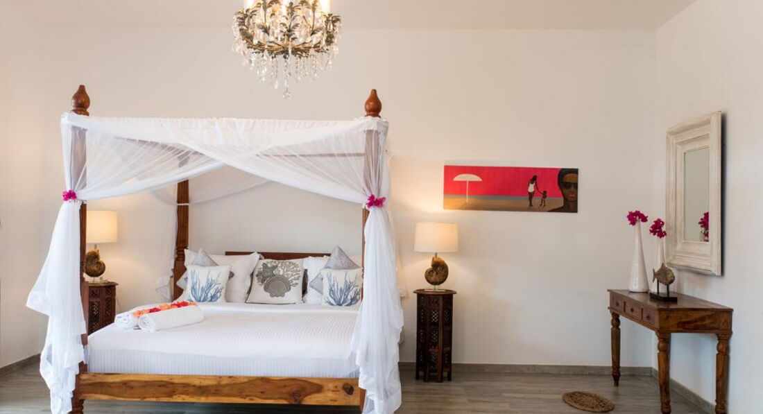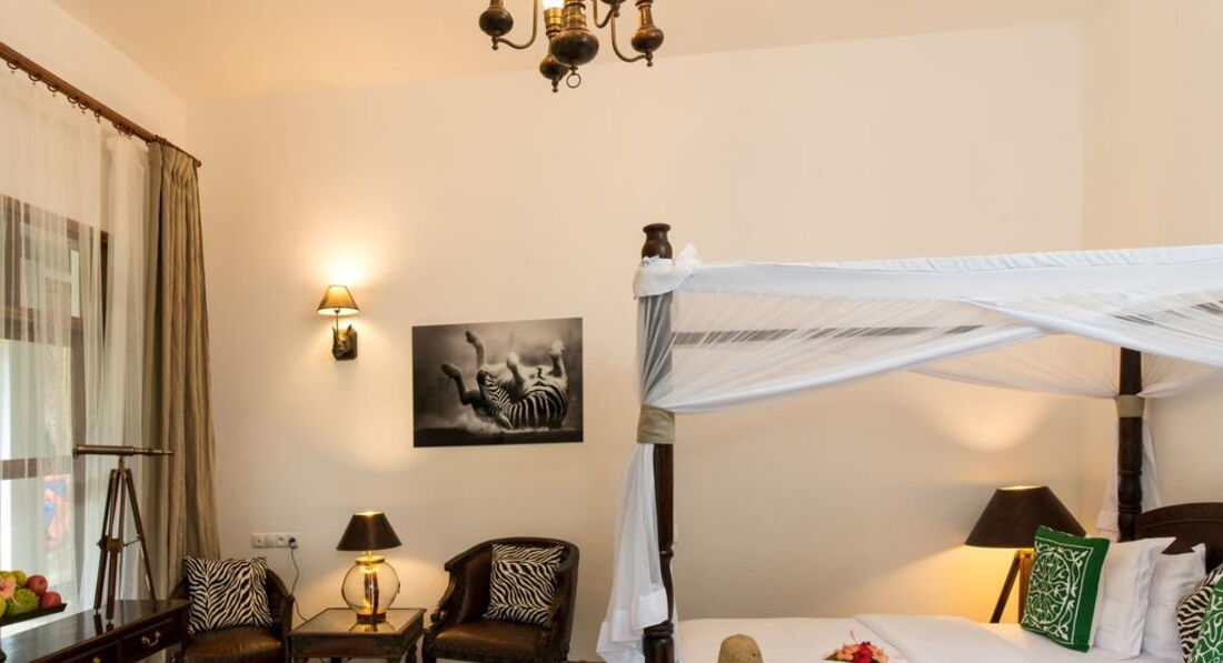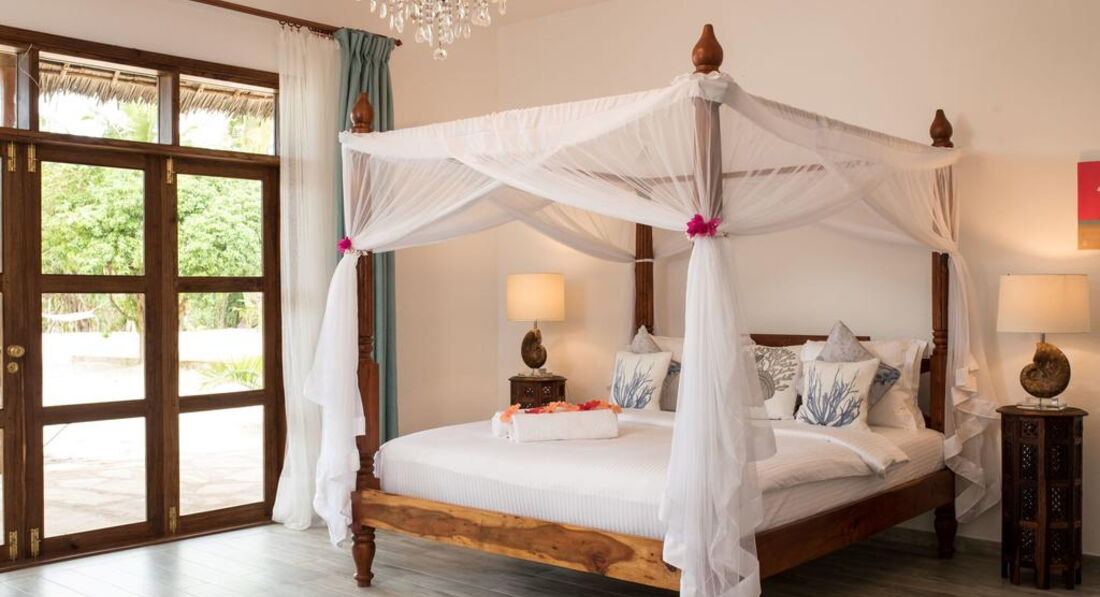 • Bahari Villa площею 46 кв. м з просторою терасою та видом на сад розташована на самому березі моря, під тінями Занзібарських пальм. Вілла обладнана великим двоспальним ліжком, просторою ванною кімнатою з ванною
