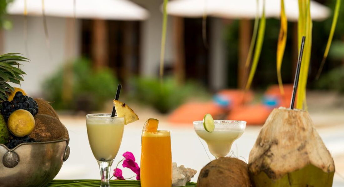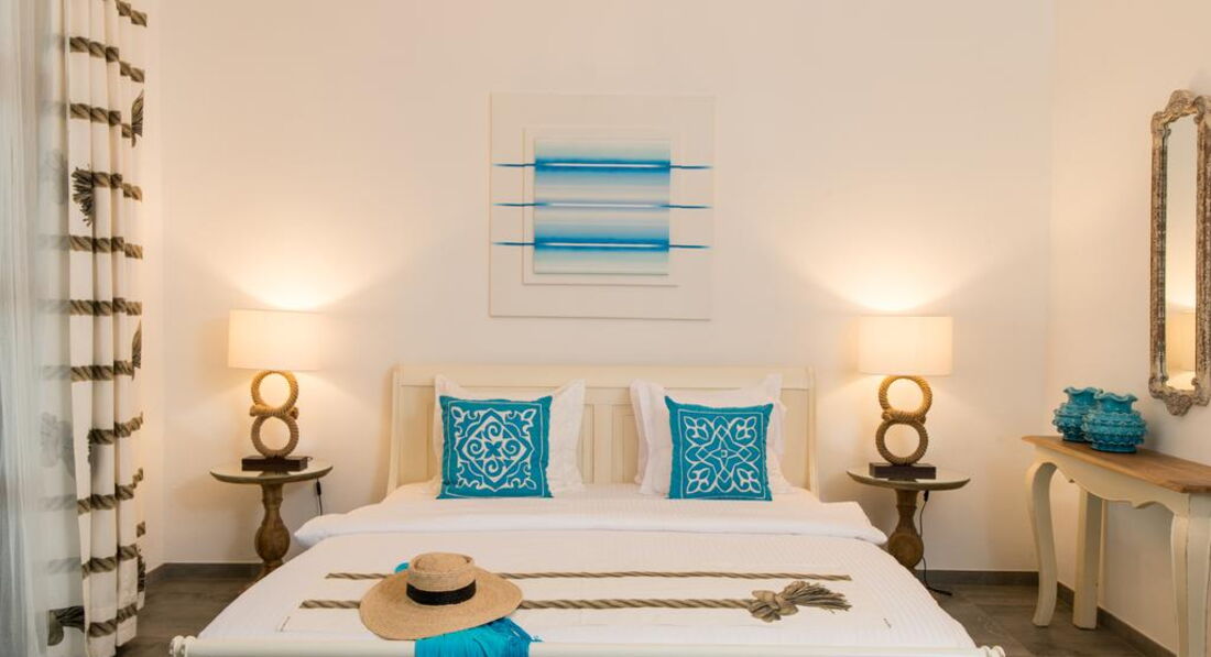 • Coconut Room площею 40 кв. м із просторою терасою. Номер обладнаний великим двоспальним ліжком, просторою ванною кімнатою з душем