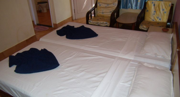 Ездили на Гоа вчетвером. Прилетели рано, в отеле были около 10 утра. Заселили без проблем в корпус рядом с бассейном в комнаты на первом этаже. Один номер выходил на бассейн, второй на обратную сторону, в кусты. Номера оборудованы вентиляторами и кондиционерами. Ни разу не видела ни одного работующего кондиционера, да он и не был нужен. К вентилятору на потолке привыкли быстро, как будто на вертушке летишь :) Номера убирали каждый день, когда лучше, когда хуже. Несколько раз оставляли по 20 рупий, нам за это складывали полотенца гормошкой и брызгали благовониями :) Не ждите идеальной чистоты в Индии, понятия о чистоте и гигиене у индусов свои. Постельное белье странноватого серо-розового цвета, происхождение которого поняли, поносив и постирав свои белые туники. Почва в Индии красноватого оттенка, наверное, и вода такая же. Электроэнергия отклучается часто, это касалось не только отеля, но и других районов Гоа.