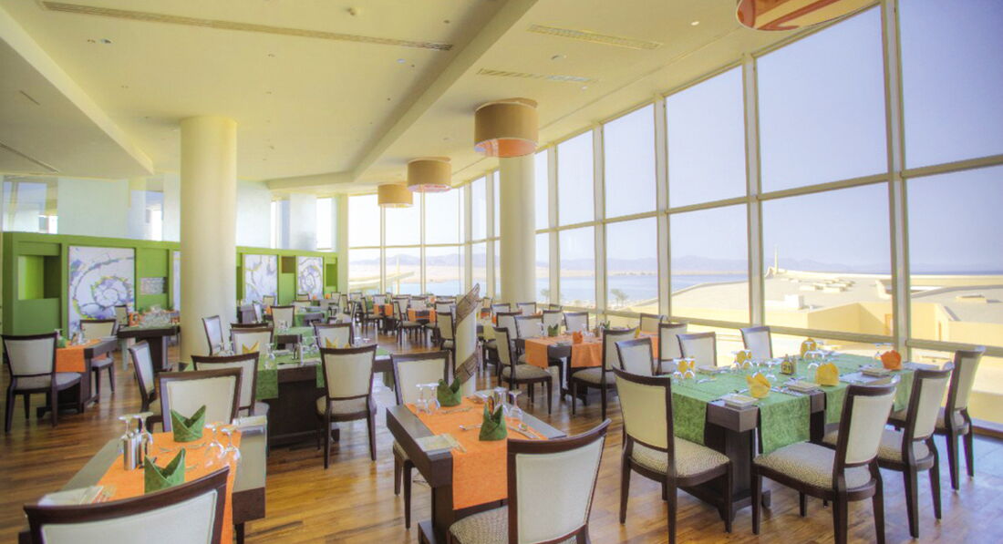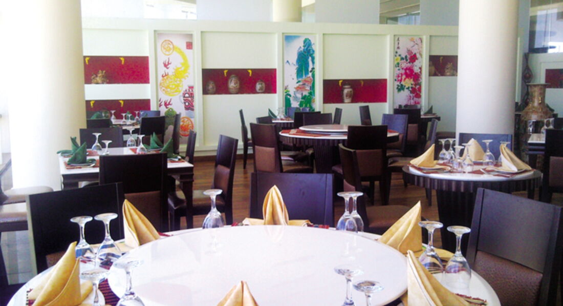 головний ресторан (критий, з кондиціонером, літня тераса, дитяче меню, дієтичне меню, дитячі стільці), лобі-бар на ресепшн, бар біля басейну (10:00-18:00), бар на пляжі (10:00-24: 00). 4 ресторани A la Carte: китайський, рибний, італійський, національний - платно, за попередньою резервацією.