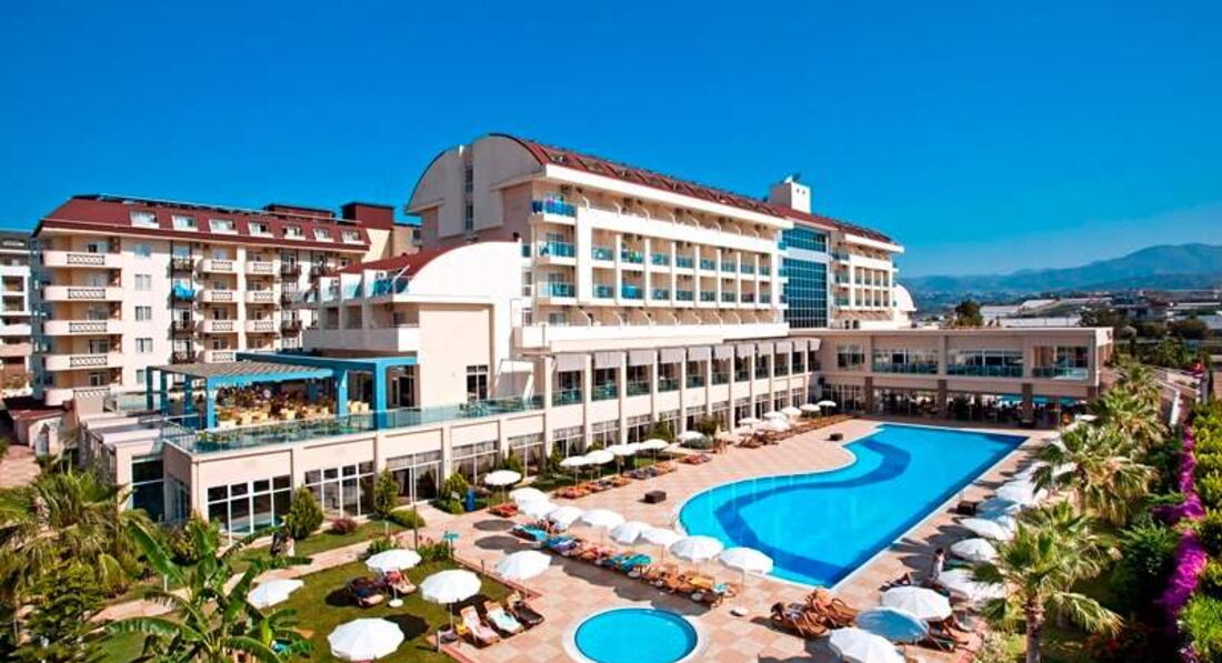 Отдыхали с двумя маленьками детьми. Все было замечательно. Персонал говорит и на русском и на английском языках. Если есть сложности с переводом в отели работает прекрасная русская девочка аниматор, которая знает турецкий, в случае какого то не допонимания она всегда готова помочь и решить трудности перевода. Все очень улыбчивы и дружелюбны. Номера чистые и светлые. Уборка со сменой белья каждый день. Холодильник пополняется бутылками с водой каждый день. Хорошие кондиционеры. До моря идти 5 минут по приятной аллеи, не нужно переходить дорогу. Кормят хорошо и много. Анимация на уровне самодеятельности, но за счет таких позитивных ребят она приносит много положительных эмоций. Дети в восторге от мини диско. Поют все песенки и танцуют. Очень жалеют, что мини диско больше не будет. Русских туристов море. Можно сказать одни русские, украинцы и белорусы. Вели себя все очень хорошо, не какого "тагила" не было. А вот немцы были очень беспокойные. Пили весь божей день. А потом бегали по этажам отеля в трусах с музыкой и криками пол ночи. Хотя это было забавно. Хочу отметить, что многих туристов гиды дают не верную информацию относительно пляжных полотенец. Скажу сразу они БЕСПЛАТНЫЕ. Нужно на ресепшен получить карточку и менять ее на полотенце. При выселении карту сдаете. Деньги платите только в случае утери 10 евро. А вот матрасы для лежаков на пляже платные 1 евро в день. Бассейны чистые. Вся территория убирается постоянно. Есть две хорошие водные горки. Так же в отели мы брали в аренду машину. По таким же ценам, что и в городе. При этом машина практически новая и чистая. Вообщем сегодня мы прилетели и отдых остался в нашем сердце. Р.s. До Алании с ее достопримечательностями ехать 15 минут на машине по живописной дороге. Советую посетить пляж Клеопатра и старую крепость, вид потрясающий.