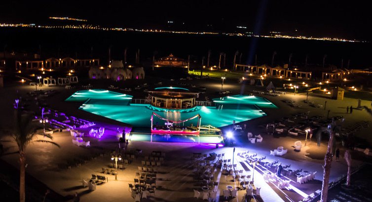 Приехали ночью.Нам принесли легкий ужин.Разместили в номере сразу.Отель большой ,просторный,удобный,красивый.В номерах есть все,что нужно-полотенца,шампуни,телевизор,стаканы,чайник,чашки.Приносят пакетики с чаем,кофе,сахар,бутылку воды.Персонал старается.Наш ломаный английский и их ломаный русский помогал нам понять друг друга.В отеле мало русских.Для меня это плюс.Не люблю на отдыхе наблюдать пьяное веселье.А арабы не пьют.Они приезжают с семьями.Много детей.А дети они и в Африке дети.Кормили разнообразно.Каждый вечер делают мясо на гриле.Много овощей -тушеных,сырых,на гриле.Фруктов было мало.Только апельсины,мандарины.Много сладкого.Я приехала 90х60х90,а уехала90х90х90.Небыло никаких дискотек до утра и прочего шума.Для меня это большой плюс.Вобщем,кто хочет отдохнуть тихо спокойно и с детьми-вам сюда.Близко граница с Израилем.5мин. до границы.Мы ездили на экскурсию.В отеле есть итальянский и китайский ресторан.Если всё вкл.,то можно бесплатно поужинать один раз в каждом.