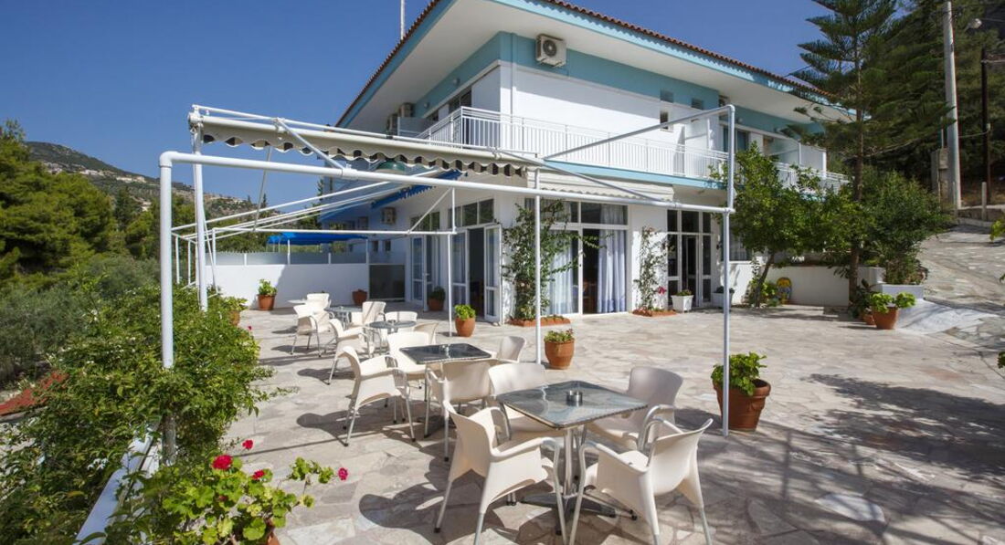 Готель для економічного та спокійного сімейного відпочинку. Невеликий готель на пагорбі, панорамний вид на море.